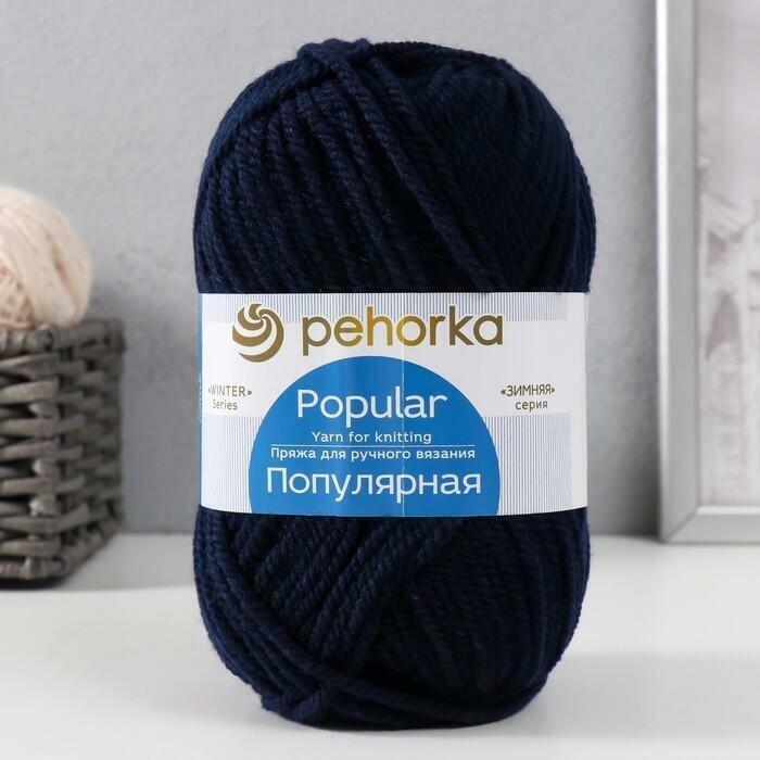 Пряжа Пехорка Популярная темно-синий (4), 50%шерсть/50%акрил, 133м, 100г, 1шт