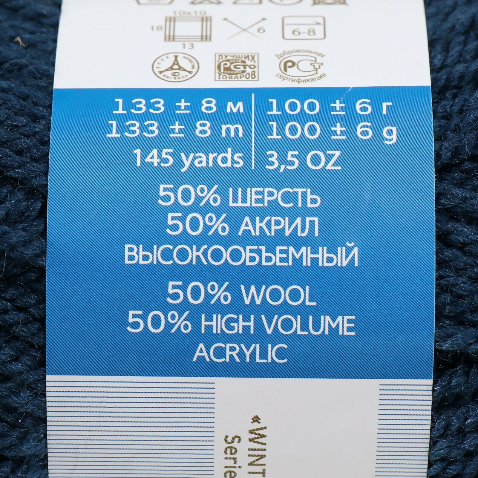 Пряжа для вязания Пехорка 'Популярная', 100г, 133м (50% шерсть, 50% акрил) (04-Темно-Синий), 10 мотков