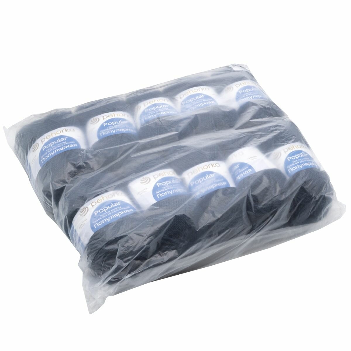 Пряжа для вязания Пехорка 'Популярная', 100г, 133м (50% шерсть, 50% акрил) (02-Черный), 10 мотков