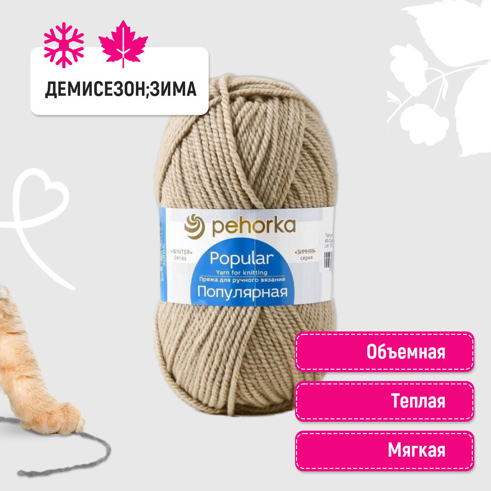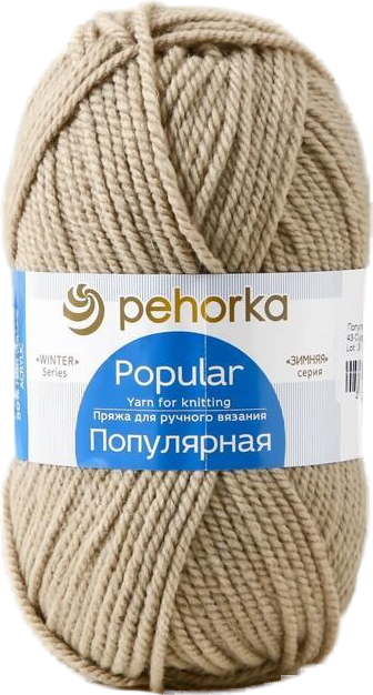Пряжа Пехорка Популярная, 412 верблюд, 100 г, 133 м, 50% шерсть, 45% акрил, 5% акрил высокообъемный, 1 шт.