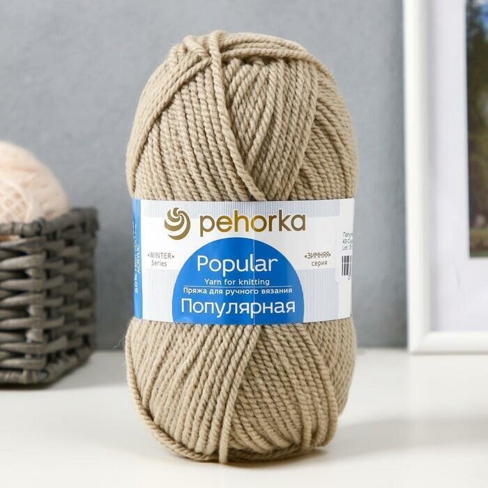 Пряжа для вязания Пехорка 'Популярная', 100г, 133м (50% шерсть, 50% акрил) (270-Мокрый песок), 10 мотков