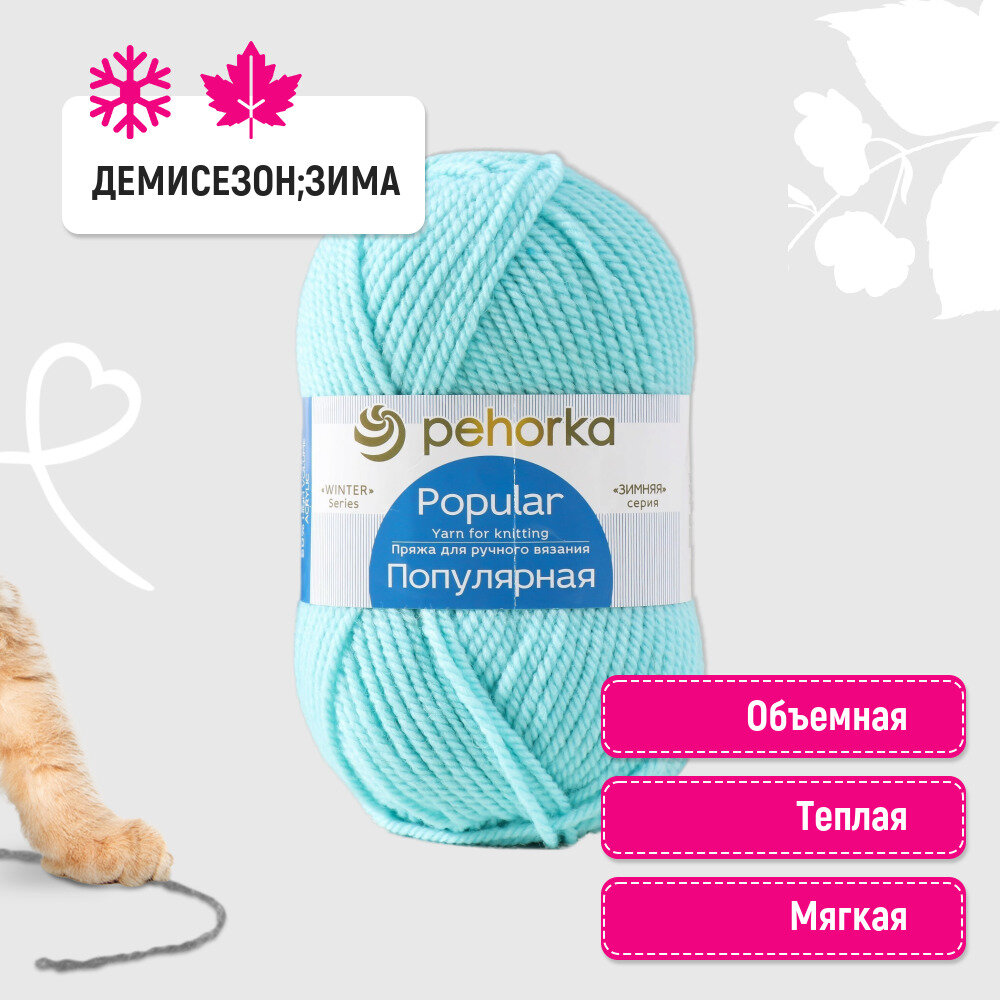 Пряжа для вязания Пехорка Популярная 073 айсберг 100 гр/133 м 50% шерсть, 50% акрил