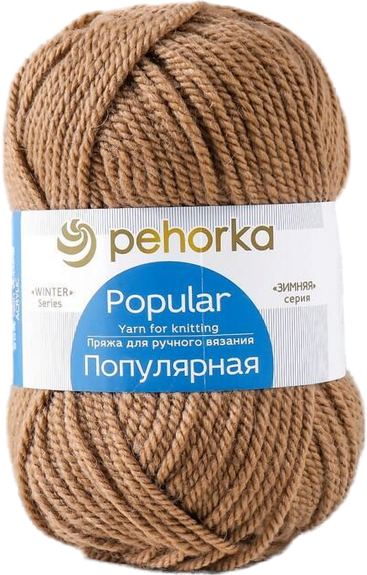 Пряжа Пехорка Популярная, 412 верблюд, 100 г, 133 м, 50% шерсть, 45% акрил, 5% акрил высокообъемный, 1 шт.