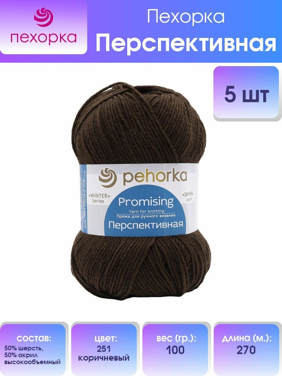 Купить Пряжа для вязания Пехорка 'Перспективная' 100г, 270м (меринос, акрил высокообъемный) (251 коричневый), 5 шт
