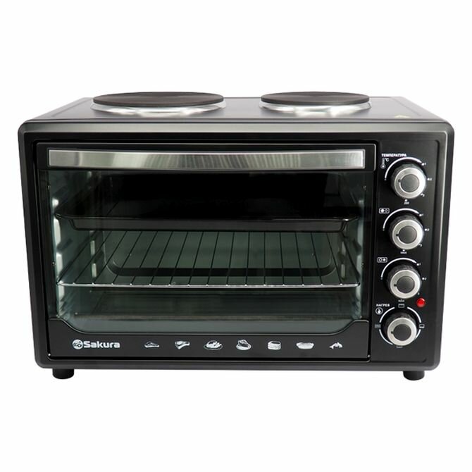 Духовка электрическая Sakura SA-7002HBK 3600Вт 48л+2конфорки,чёрный