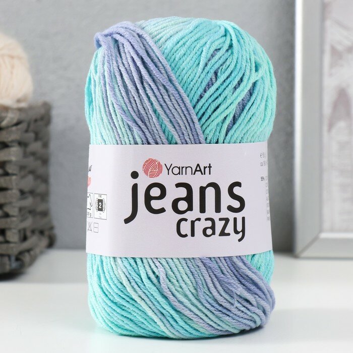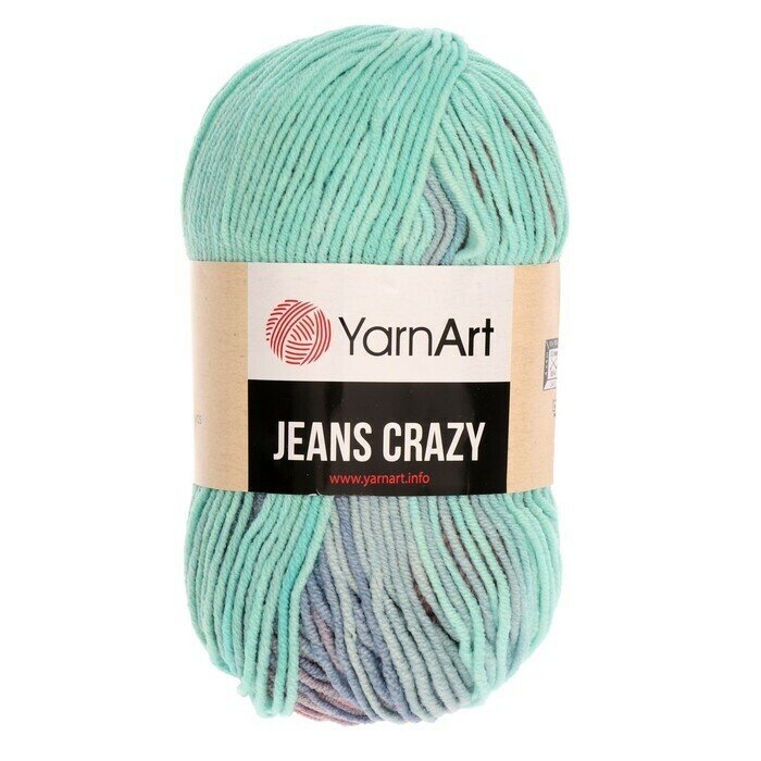Пряжа YarnArt Jeans CRAZY светло-голубой-бирюзовый-сиреневый-мятный меланж (7204), 55%хлопок/45%акрил, 160м, 50г, 1шт