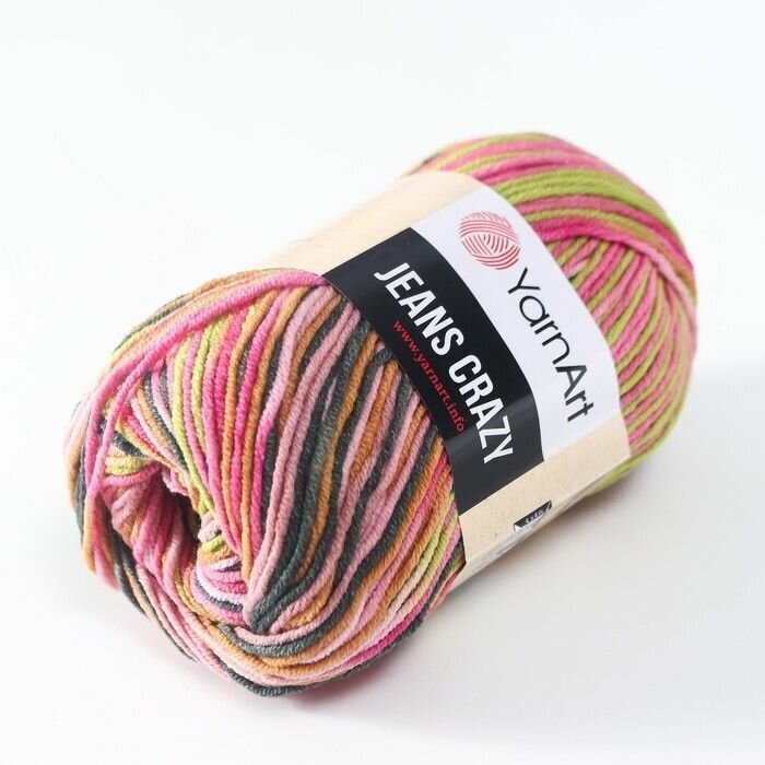 Пряжа YarnArt Jeans CRAZY малиновый-розовый-салатовый меланж (7206), 55%хлопок/45%акрил, 160м, 50г, 1шт
