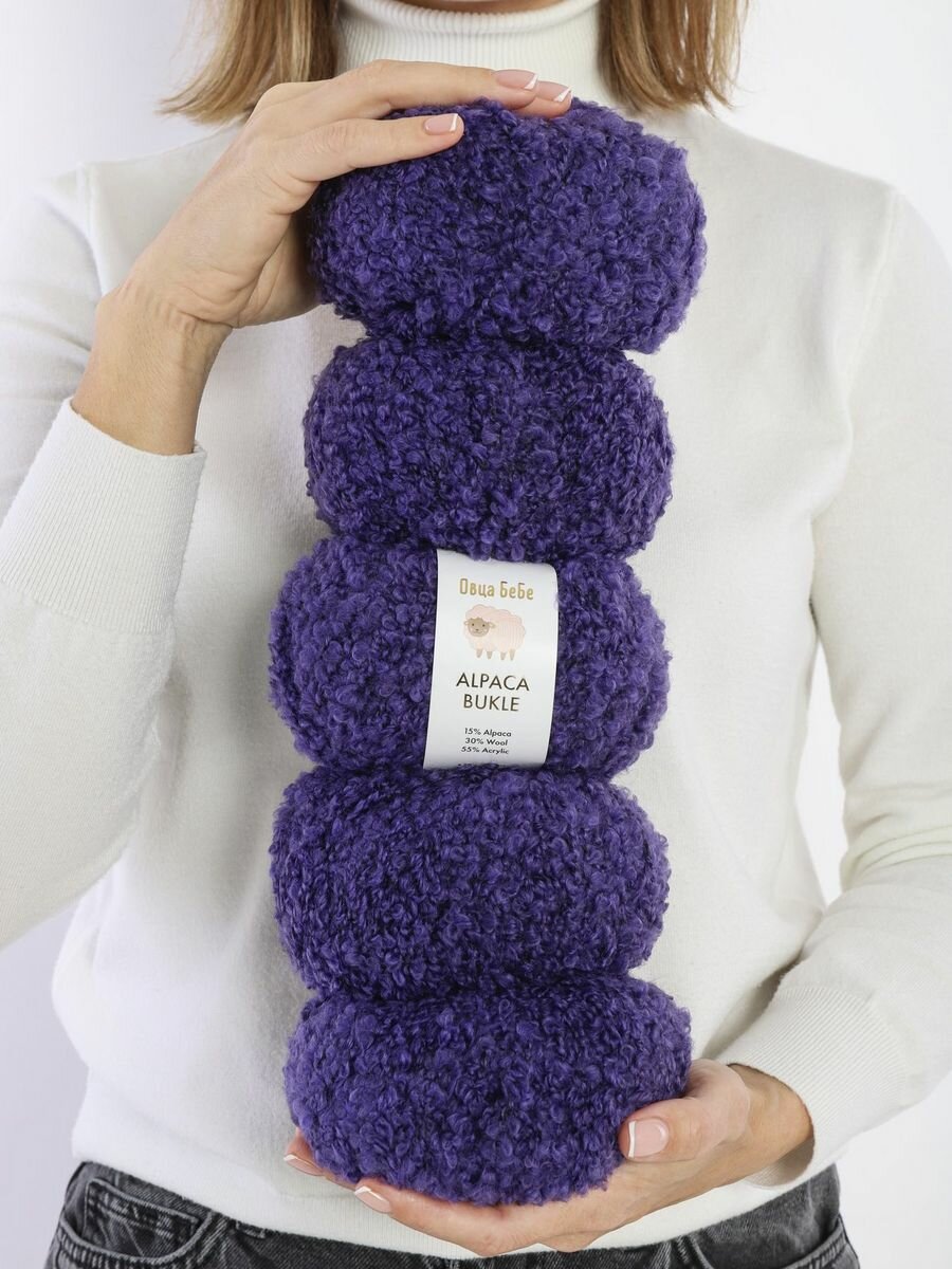 Купить Пряжа для вязания Буклированная Alpaca Bukle, цвет темно-фиолетовый (набор из 5шт)