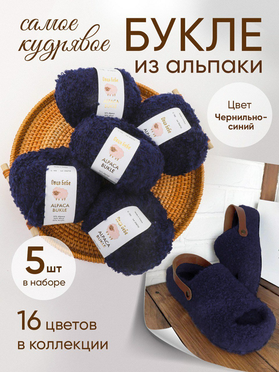 Купить Пряжа для вязания Буклированная Alpaca Bukle, цвет чернильный (набор из 5шт)