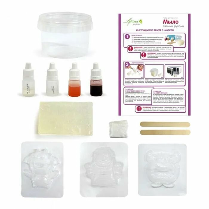 | В комплекте | ароматизатор, краситель, мыльная основа, формочка |