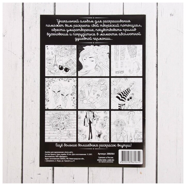 Раскраска - антистресс, альбом Insta-girl, 20 стр.