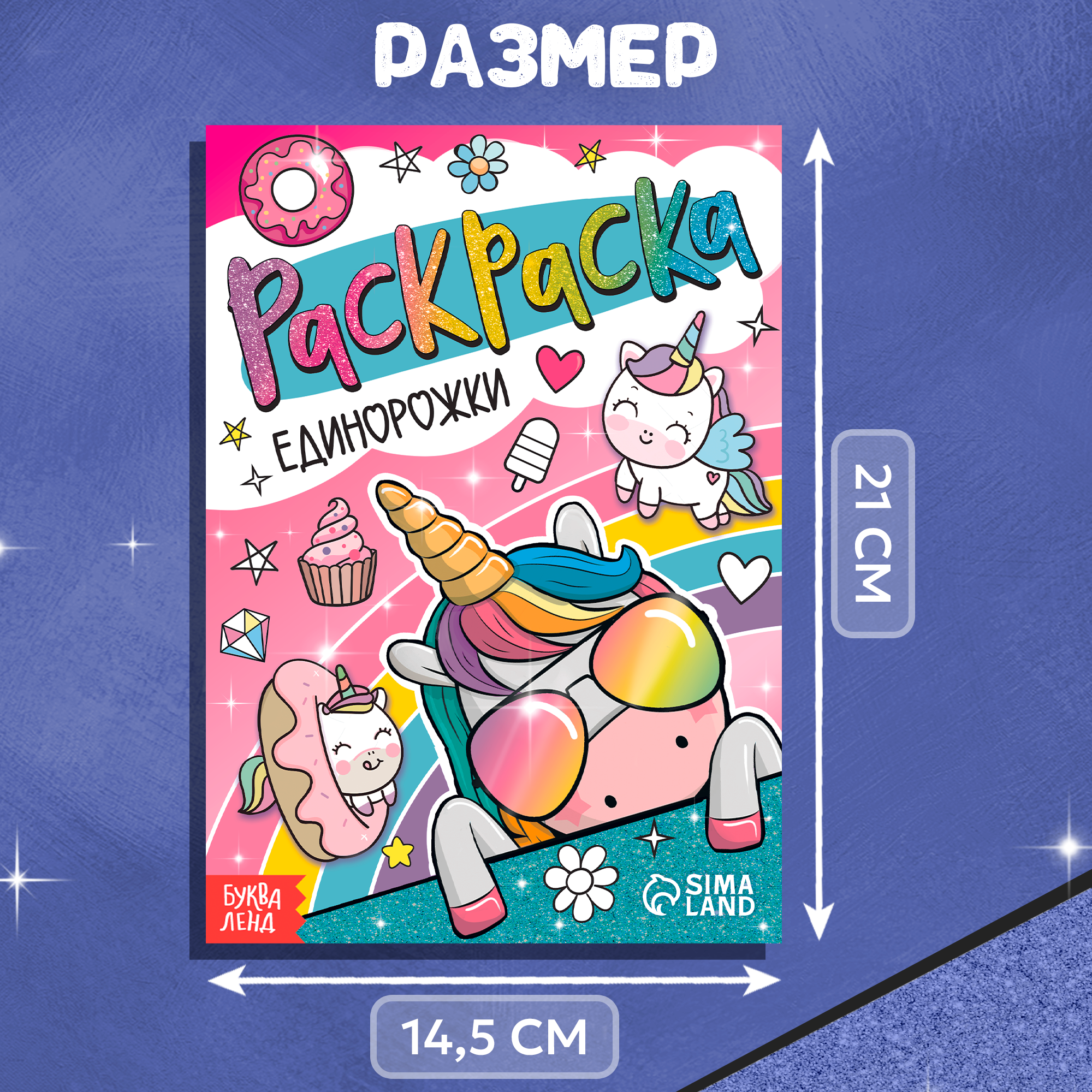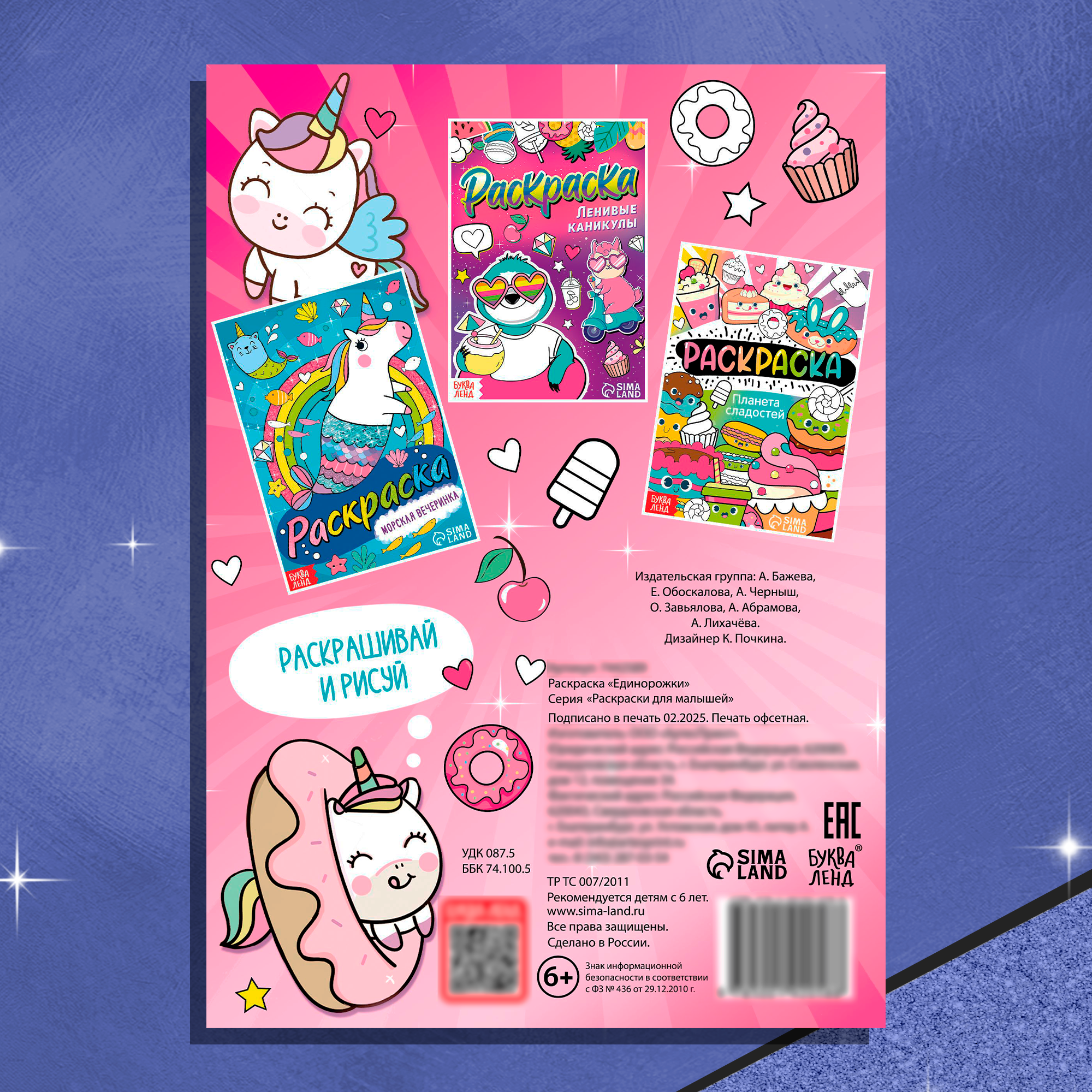 | Комплектация | Раскраска «Единорожки», упаковка |