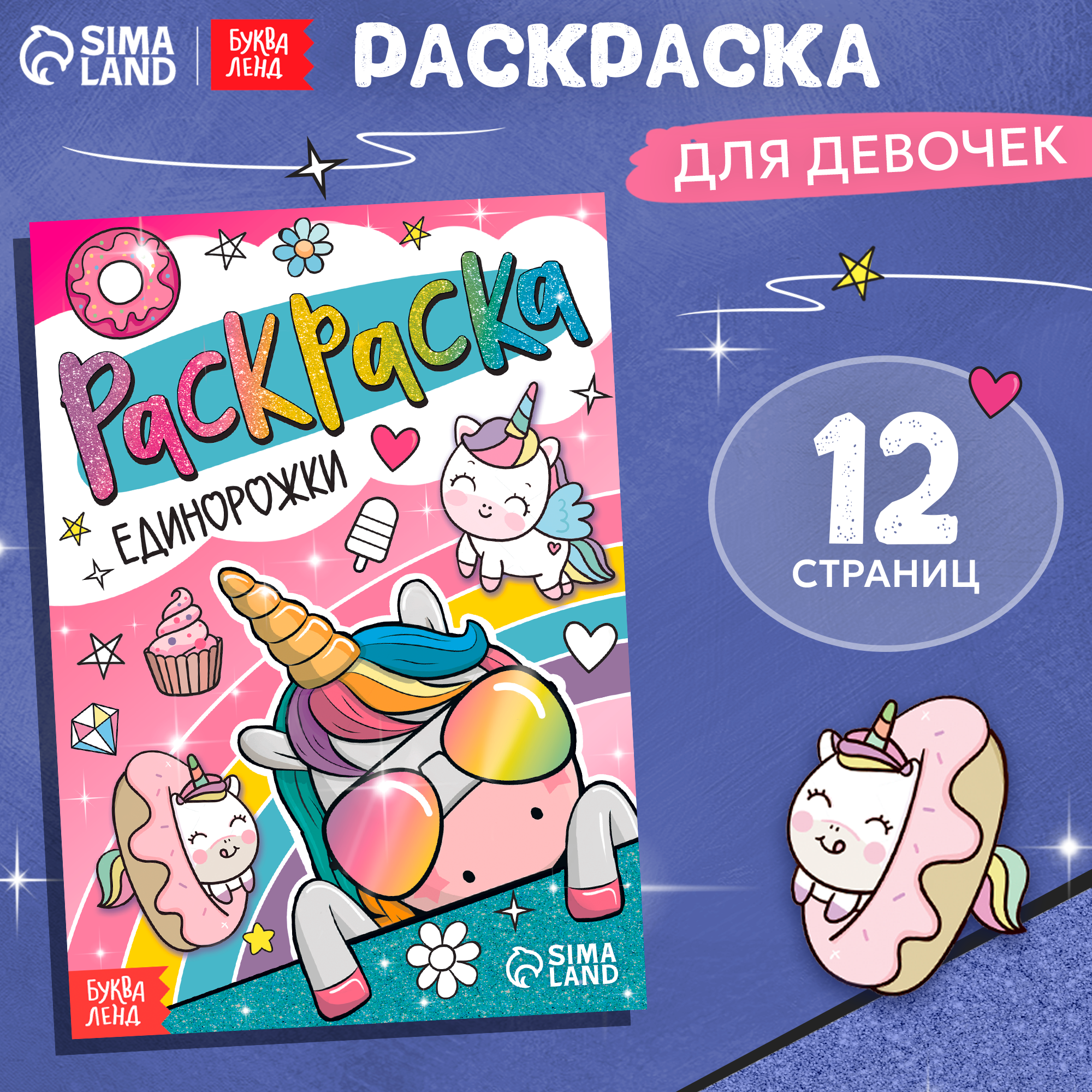 Купить Раскраска "Единорожки", 12 страниц, формат А5, для девочек, цвет розовый