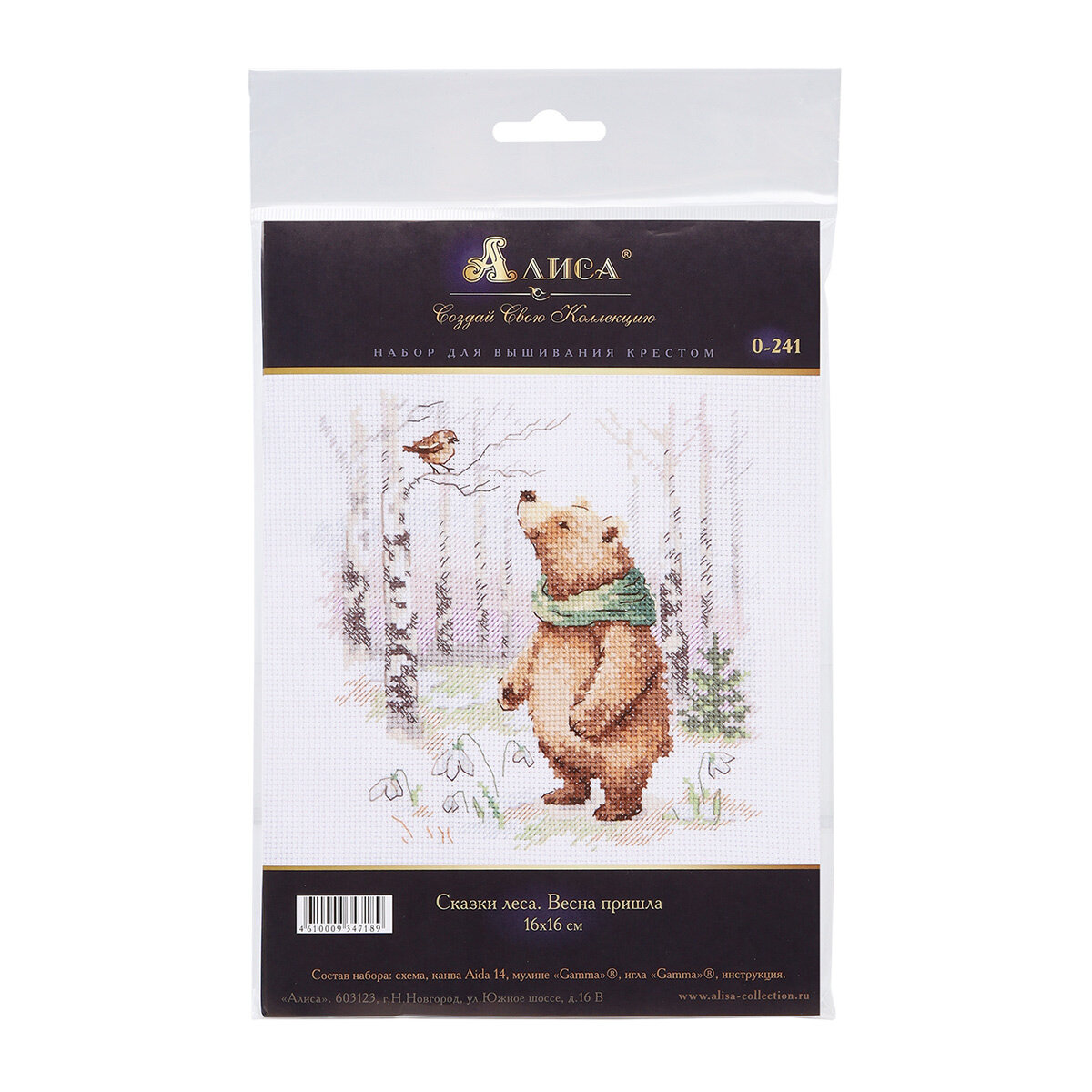 Набор для вышивания Алиса #0-244 Сказки леса. Заяц и ежонок, Счетный крест, 16 х 16 см
