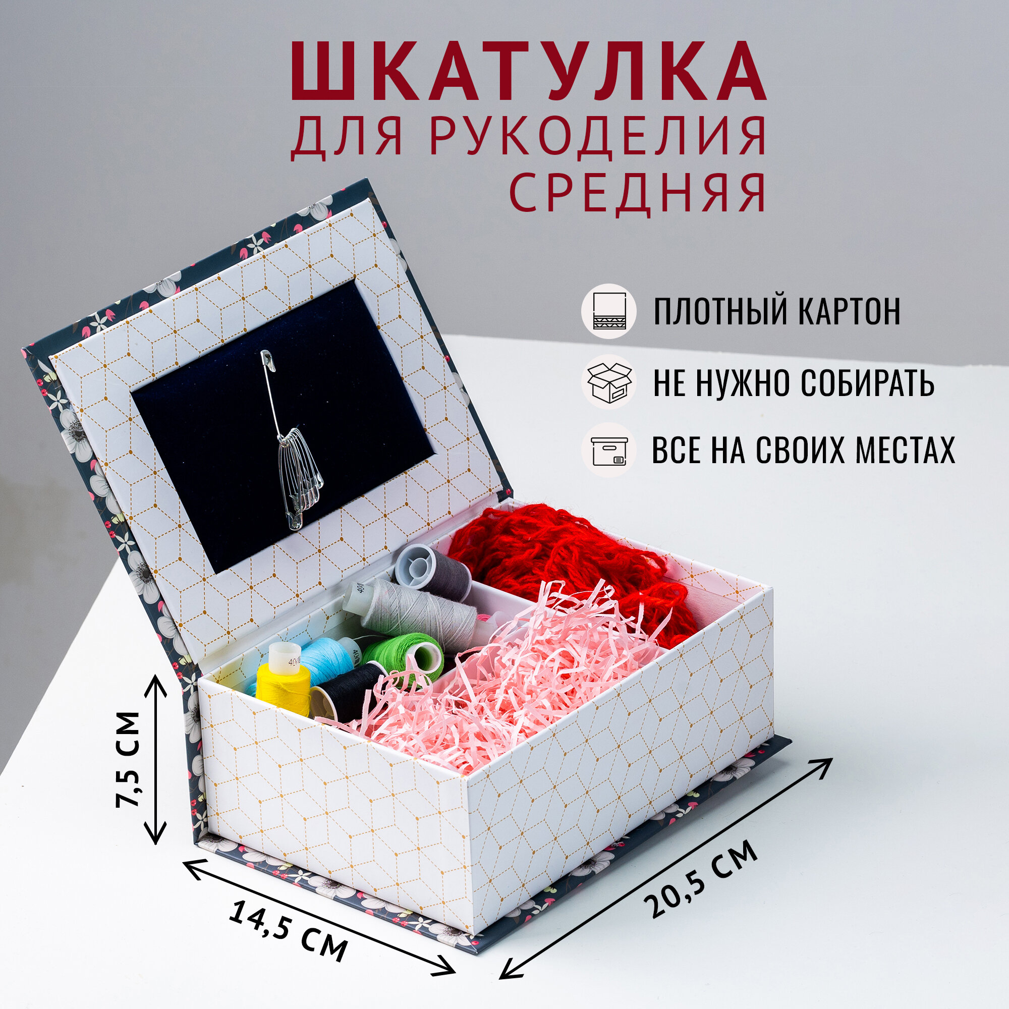 СохранитьПодарочная Коробка - Шкатулка Cartonnage для рукоделия средняя, 205 x 145 x 75 мм. "Цветы", черный интересное: