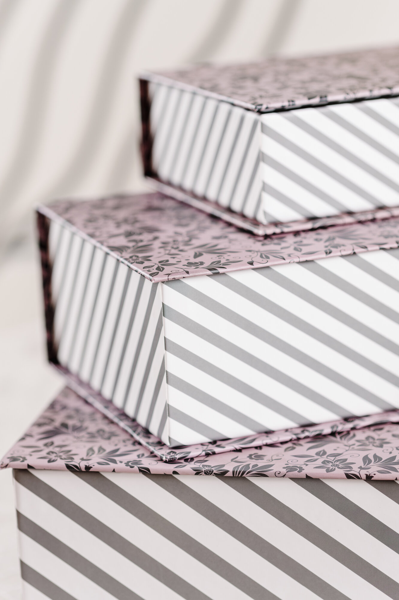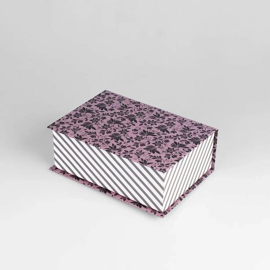 Купить Подарочная Коробка - Шкатулка Cartonnage для рукоделия средняя, 205 x 145 x 75 мм. "Цветы/полоски", розовый