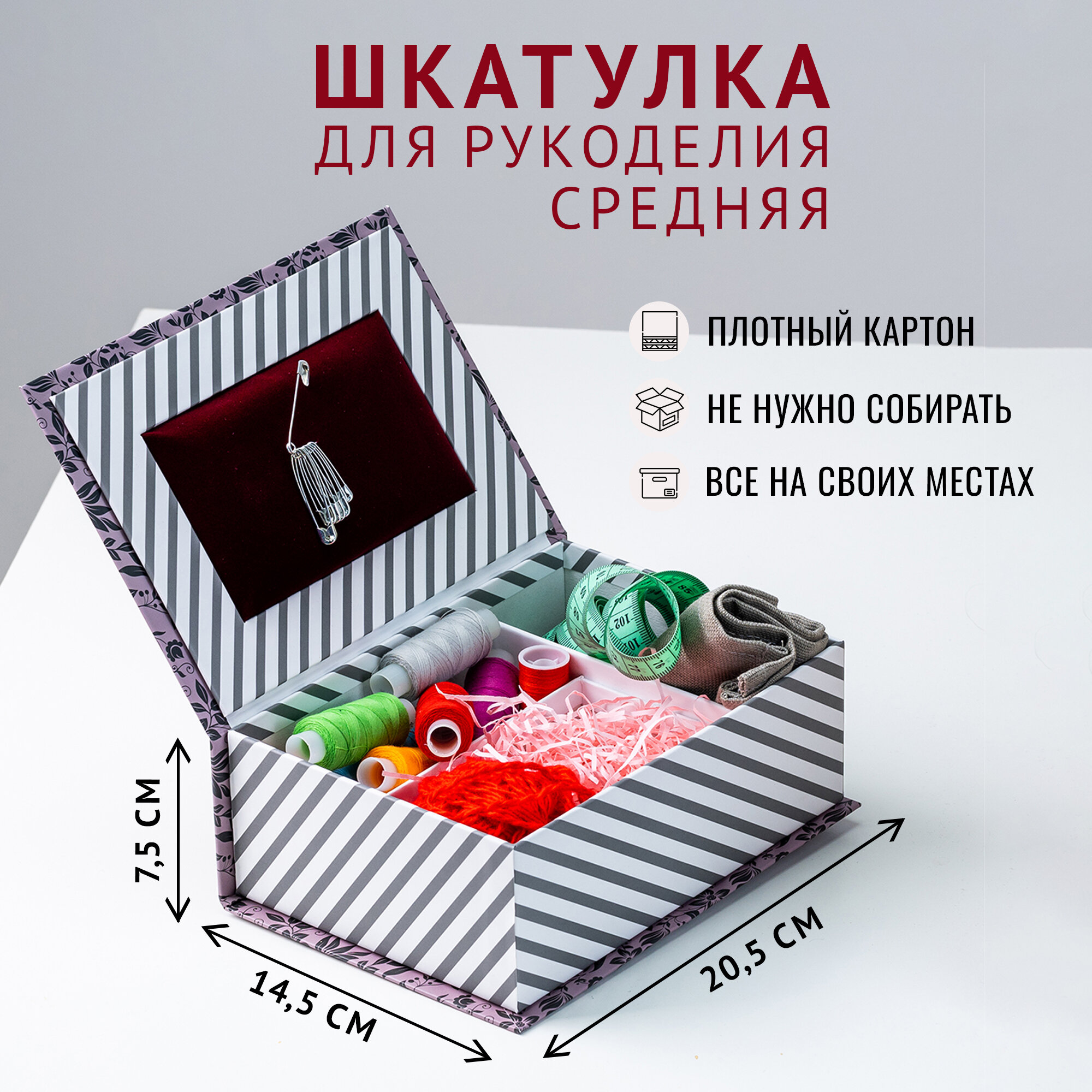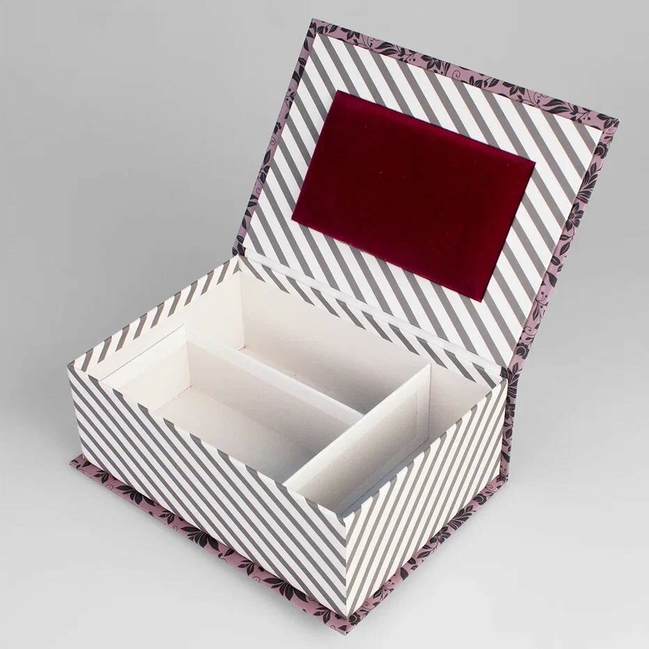 СохранитьПодарочная Коробка - Шкатулка Cartonnage для рукоделия средняя, 205 x 145 x 75 мм. "Цветы/полоски", розовый интересное: