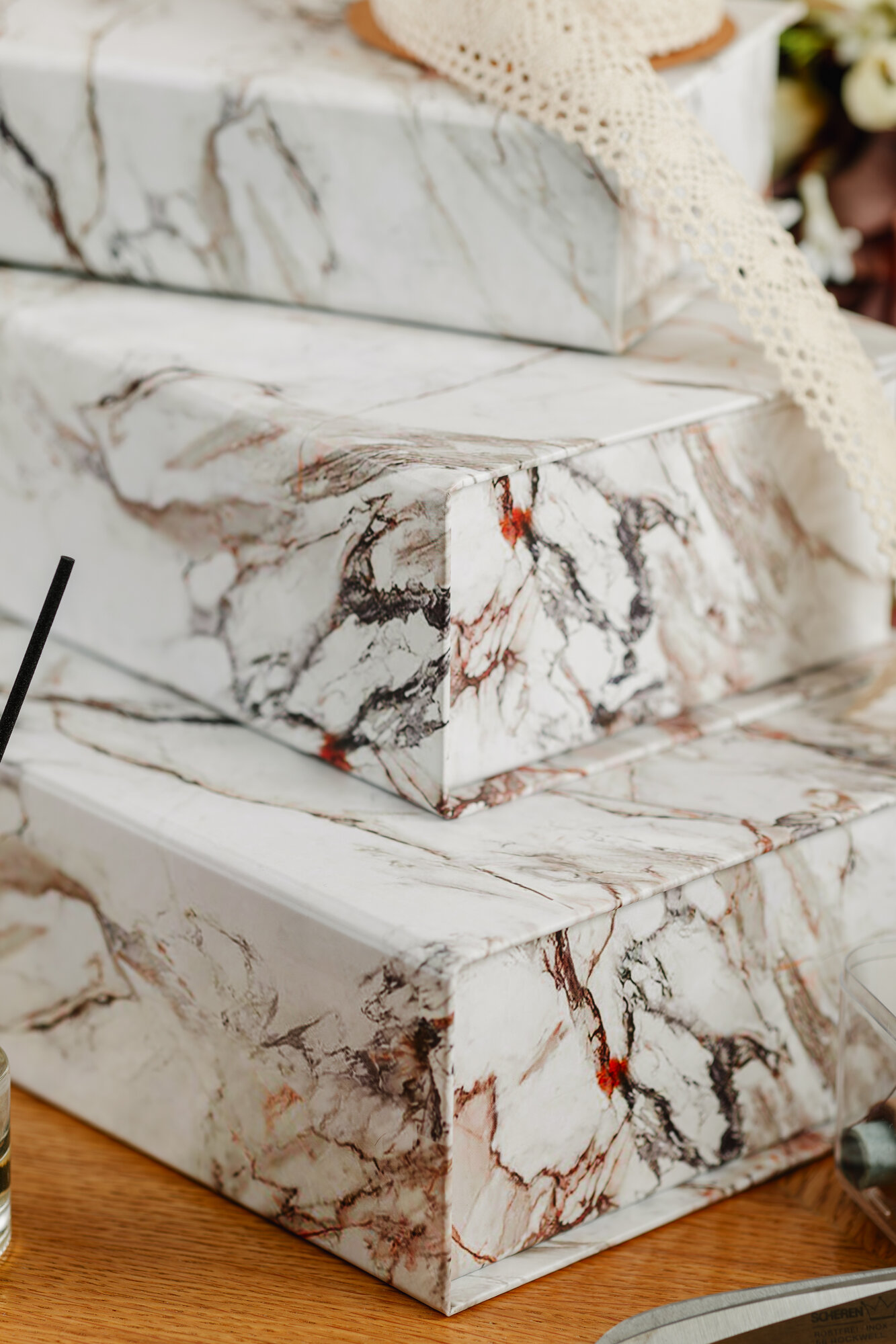 Купить Подарочная Коробка - Шкатулка Cartonnage для рукоделия средняя, 205 x 145 x 75 мм. "Мрамор", белый