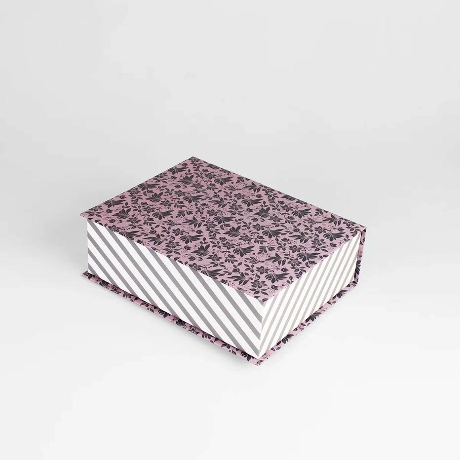 Купить Подарочная Коробка - Шкатулка Cartonnage для рукоделия большая, 250 x 200 x 80 мм. "Цветы/полоски", розовый