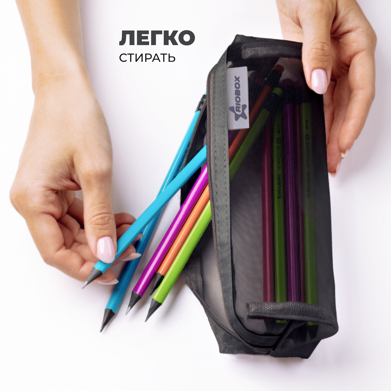 Пенал для девочек в школу RIOBOX, вместительный подростковый органайзер в сетку для карандашей и ручек, универсальный для школьников с 1 отделением, розовый с молнией, пенал косметичка, вместительный с прочной молнией, хвостик для брелка