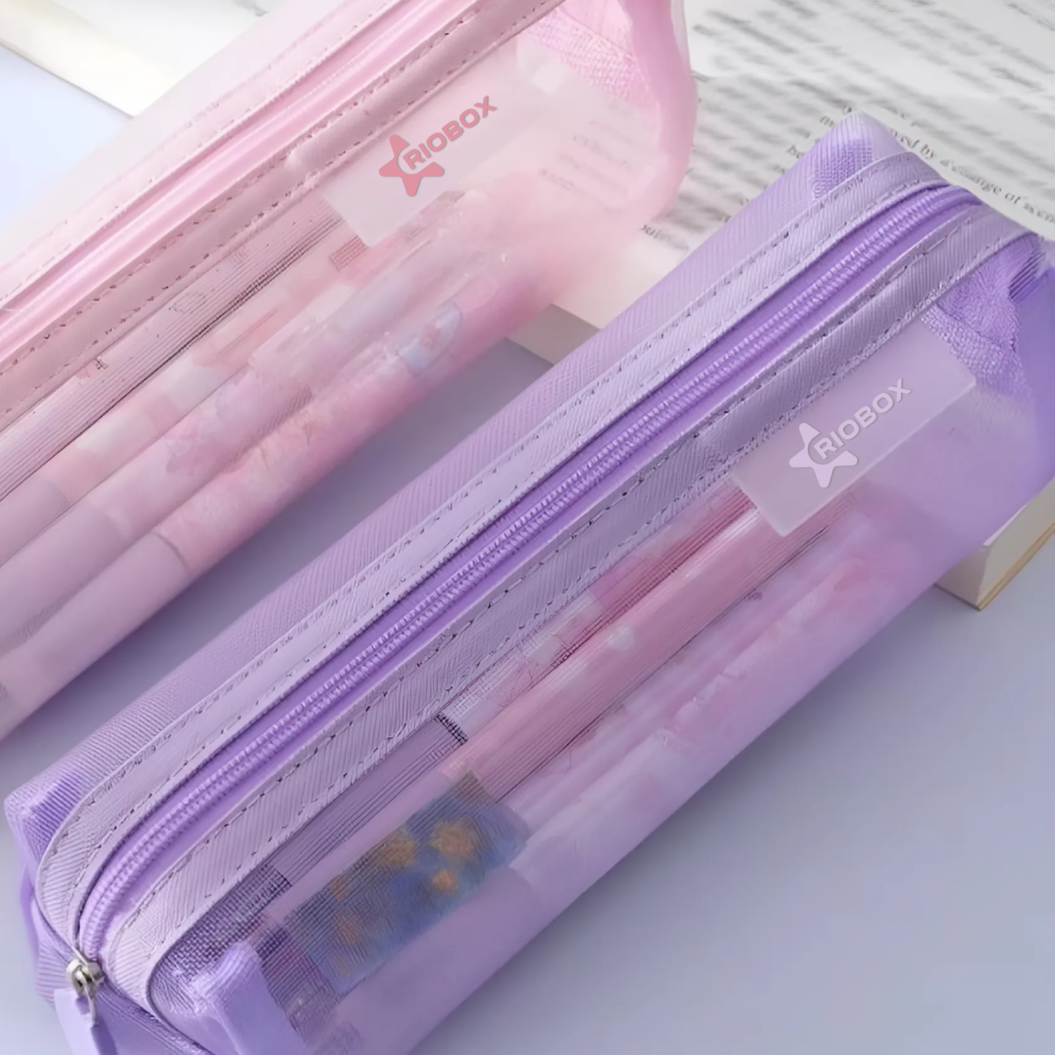 Купить Пенал для девочек в школу RIOBOX, вместительный подростковый органайзер в сетку для карандашей и ручек, универсальный с 1 отделением, розовый с молнией