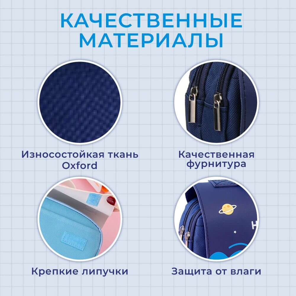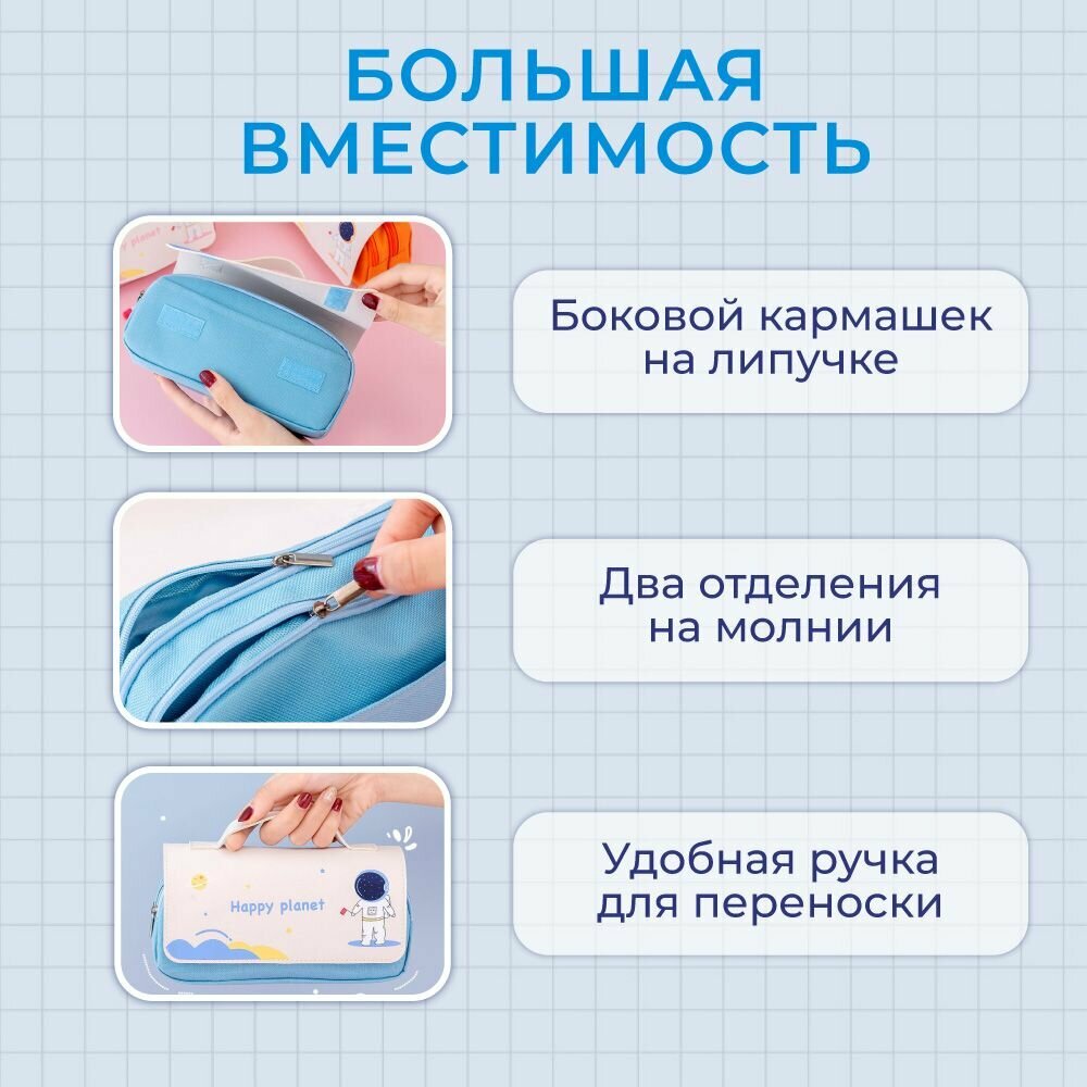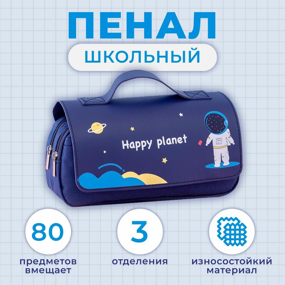 Пенал школьный для девочек и мальчиков синий, 3 отделения интересное: