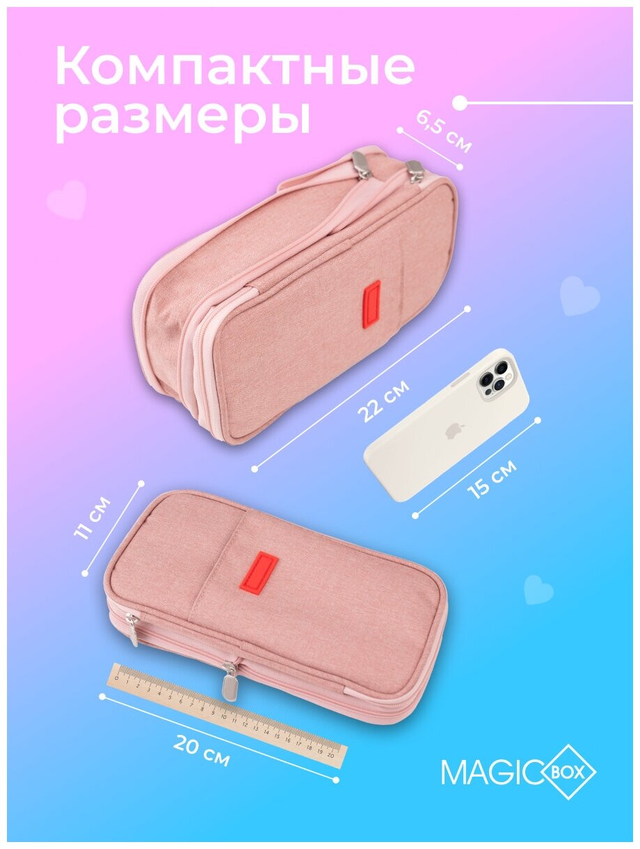 Пенал школьный MagicBox для девочек и мальчиков, 22х11х6,5 см, пенал косметичка подростковый для школы, цвет пыльно-розовый интересное: