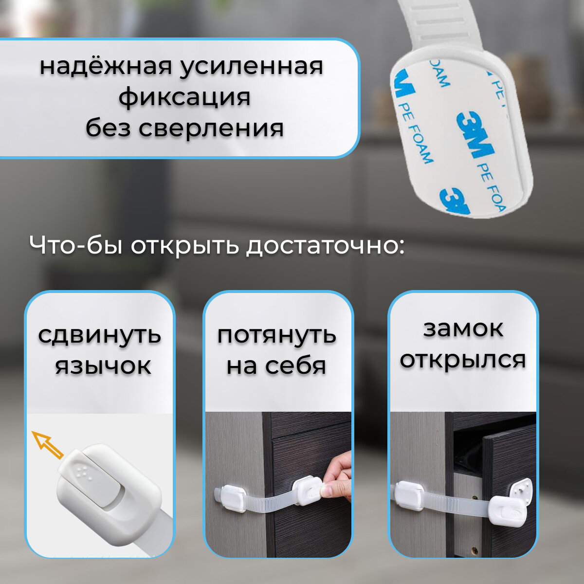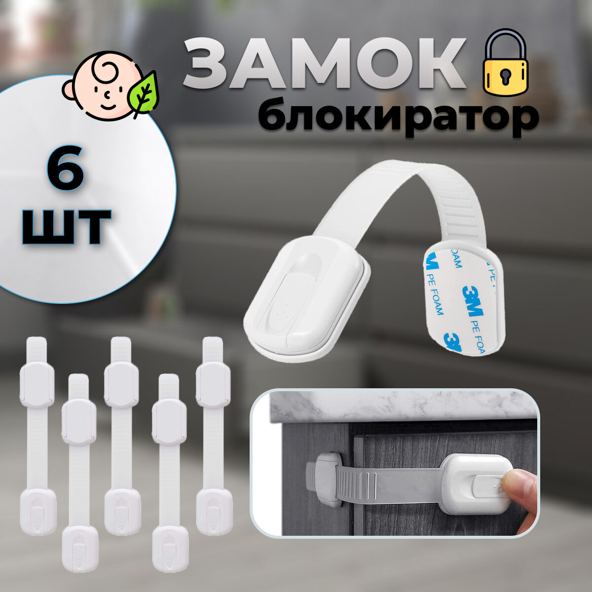 Блокираторы дверей и ящиков, в наборе 6 шт замков защитных для безопасности детей. Белые интересное: