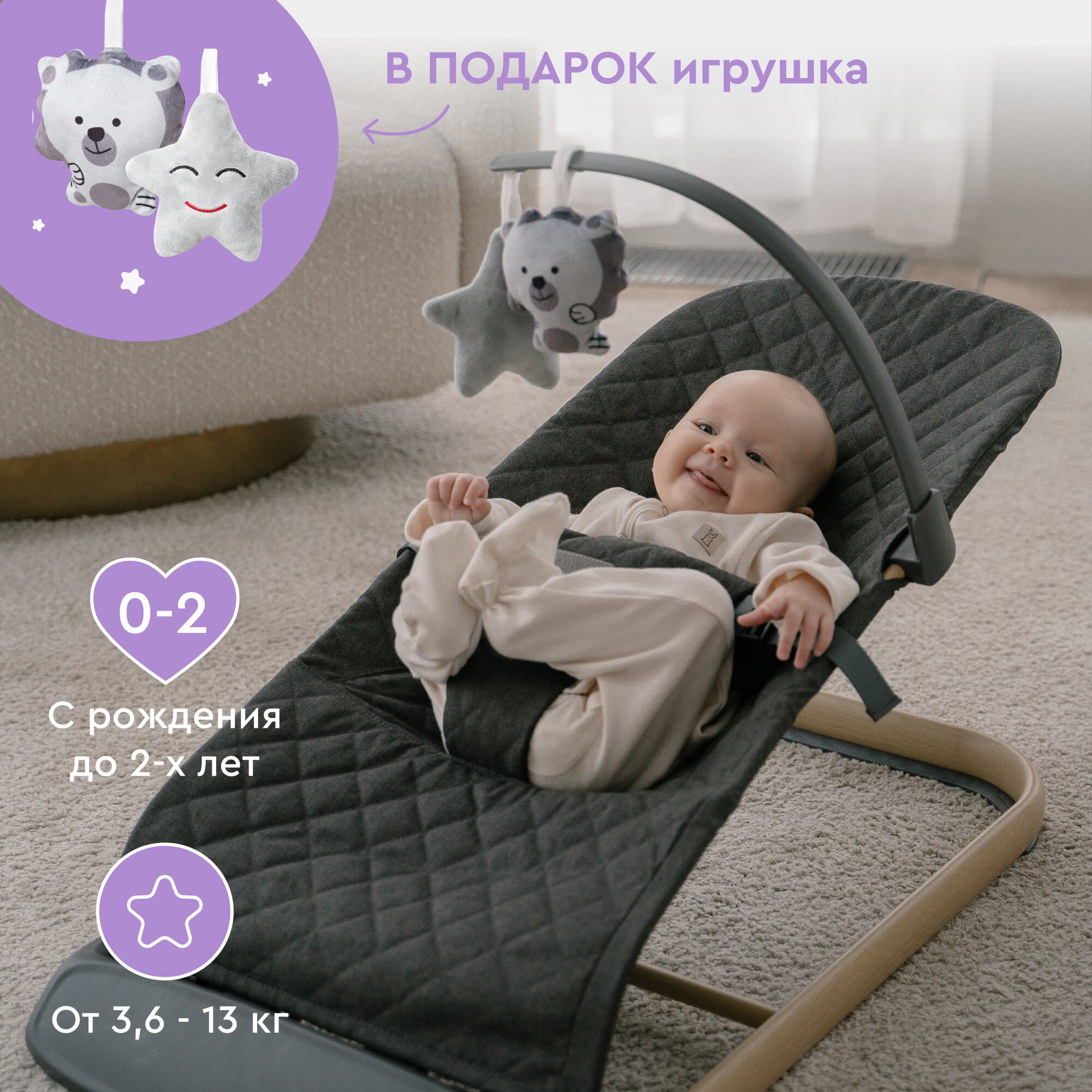 Кресло-шезлонг с игрушкой BABYROX Comfort Cotton интересное: