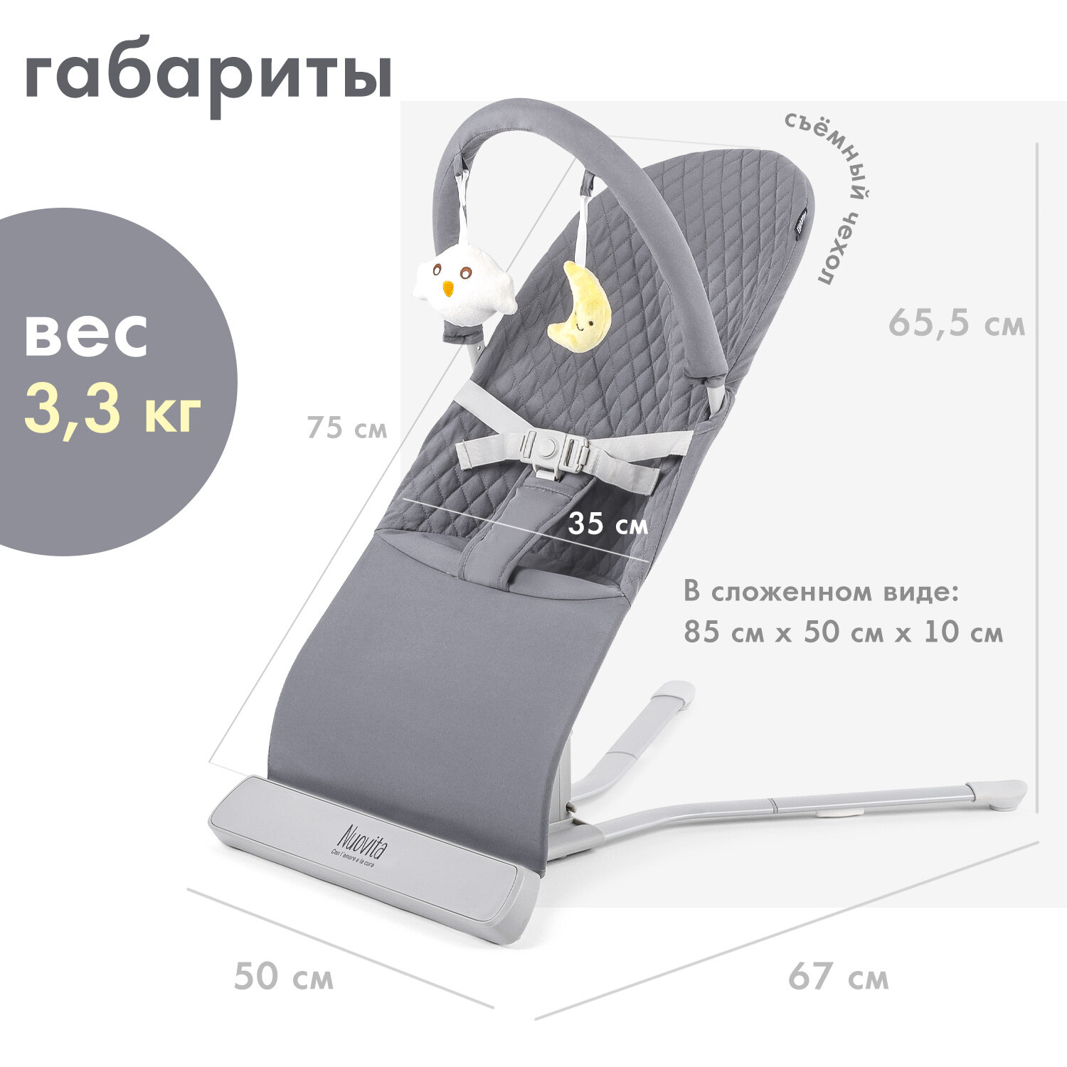 Шезлонг для новорожденного Nuovita Pulito PL2 (Grigio/Серый) интересное: