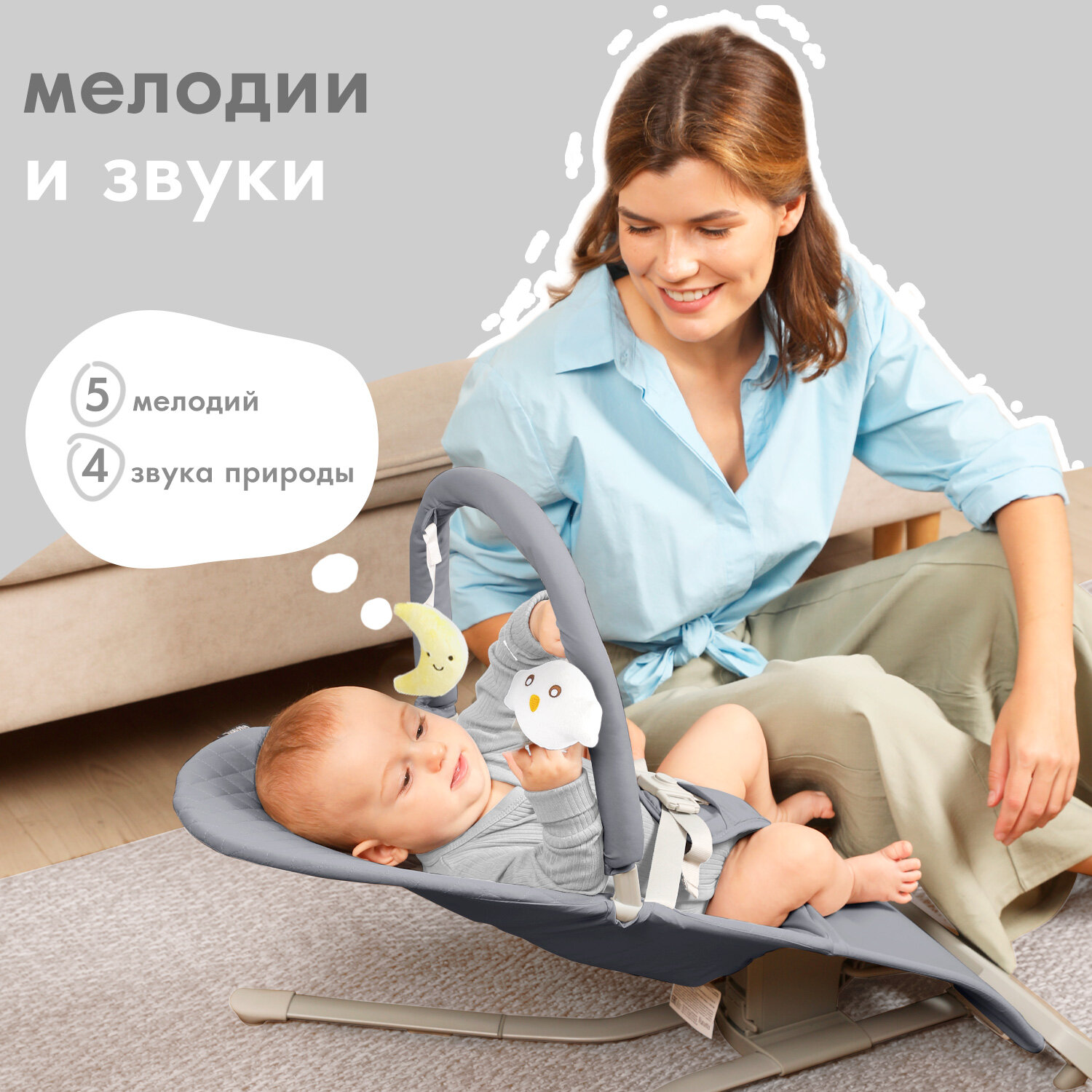 | Комплектация | Шезлонг, мобиль с 2 игрушками |