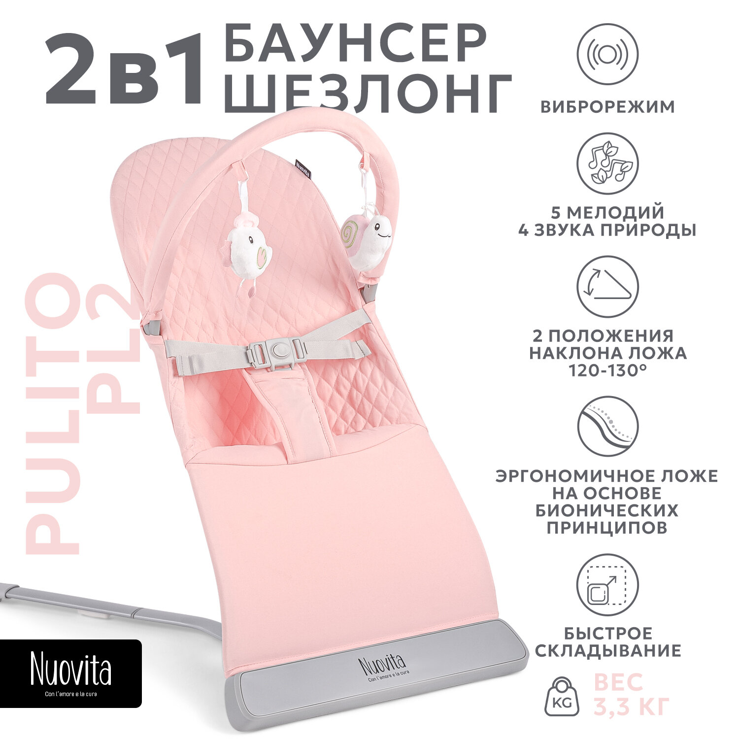 Шезлонг для новорожденного Nuovita Pulito PL2 ( Rosa/Розовый) интересное: