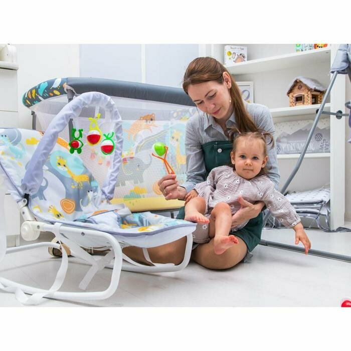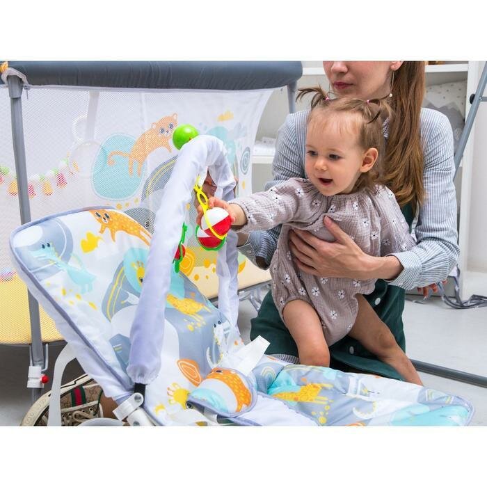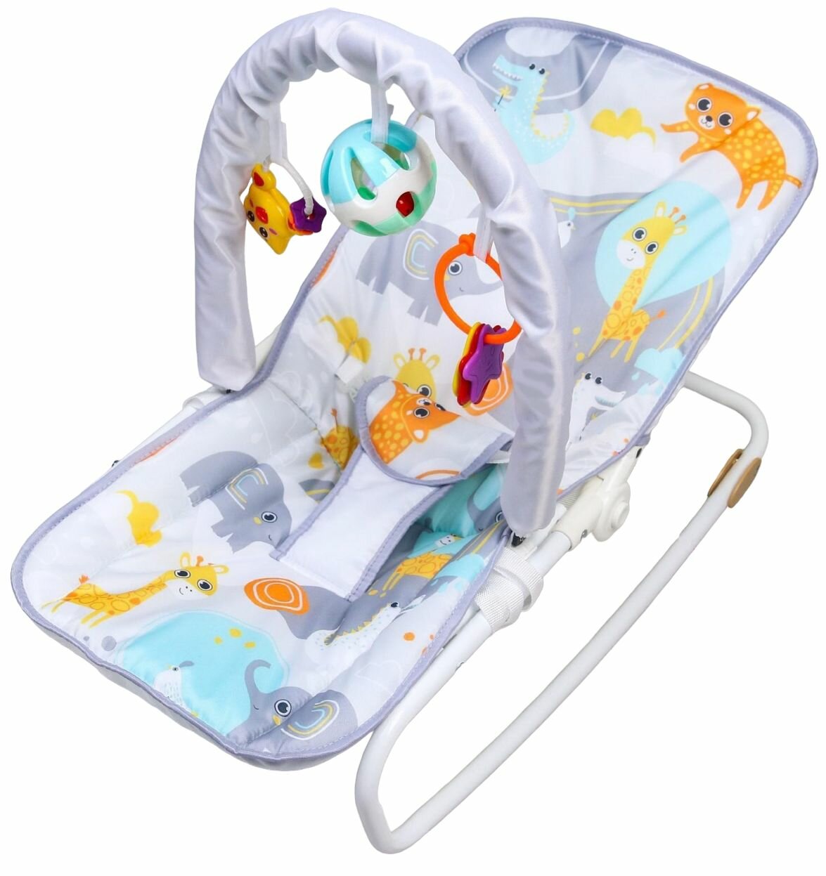 Шезлонг "Веселые зверята" для новорождённых, кресло-качалка для малышей, люлька с дугой для младенцев с игрушками, игрушки микс интересное: