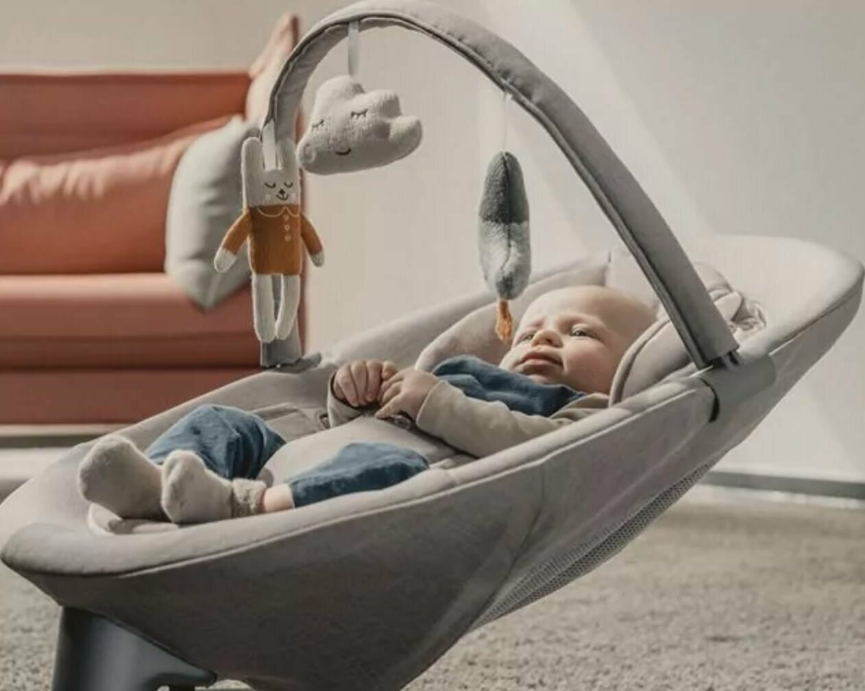 Шезлонг детский Nuna Leaf Grow c дугой с игрушками интересное: