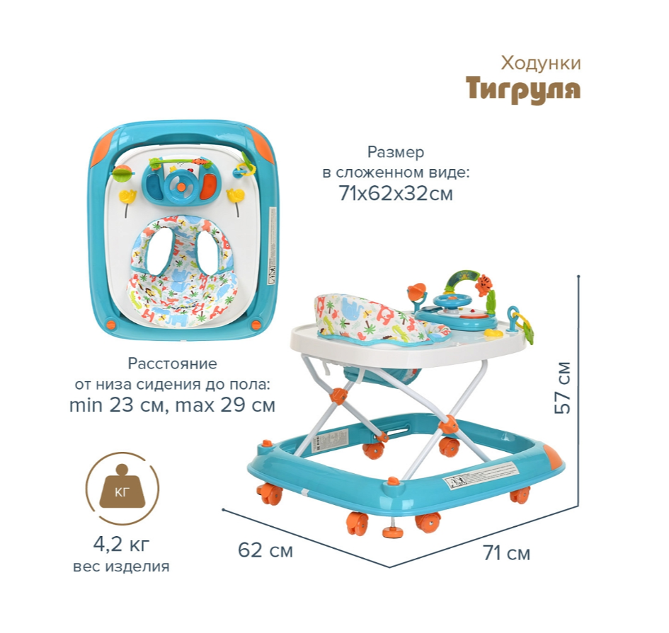 Ходунки Pituso Тигруля Blue/Голубой W1551PB8-Blue интересное: