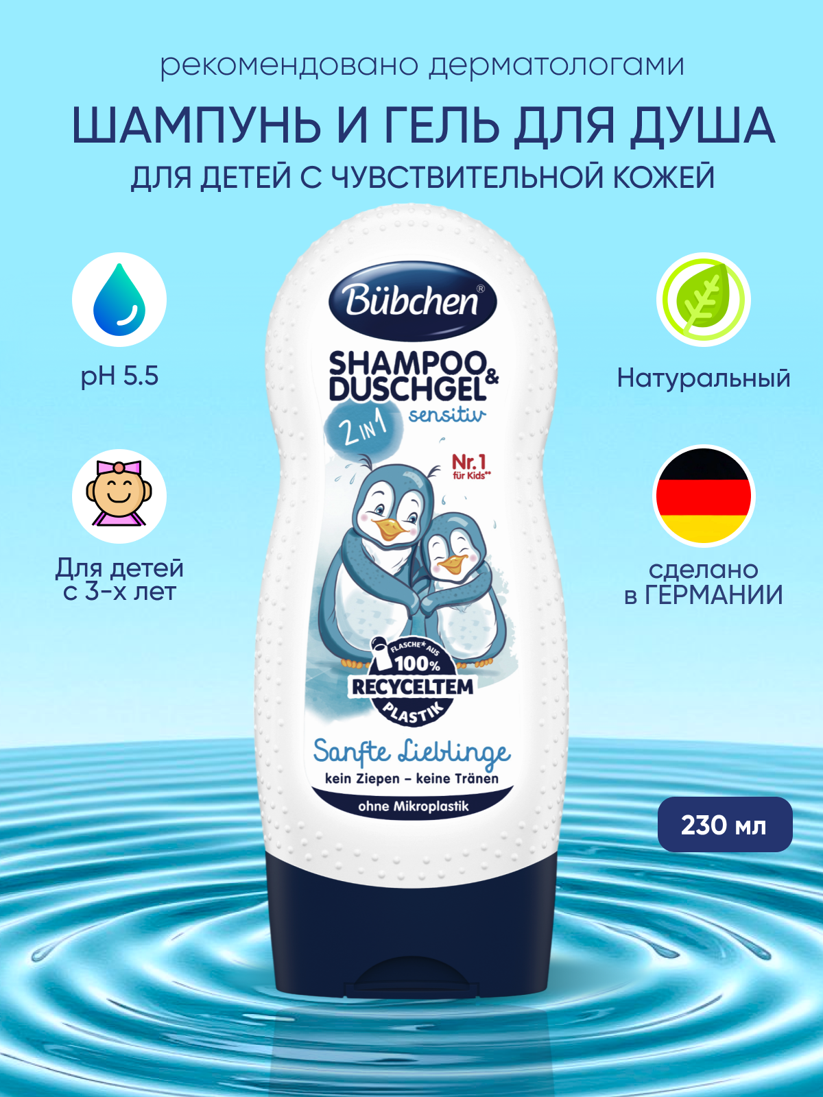 Детский шампунь и гель для душа Bubchen для детей с чувствительной кожей, 230 мл