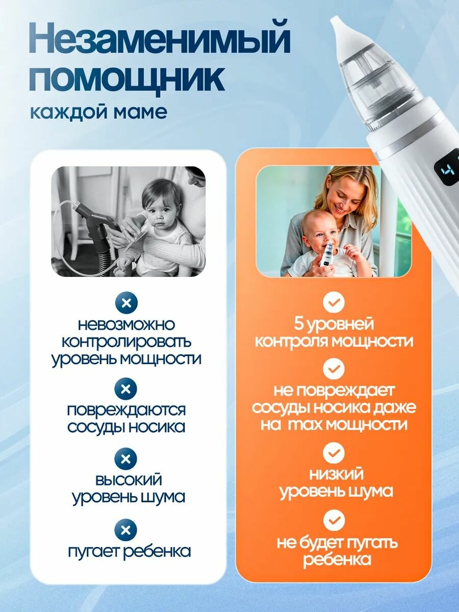Аспиратор назальный электрический детский соплеотсос с музыкой и подсветкой для новорожденных