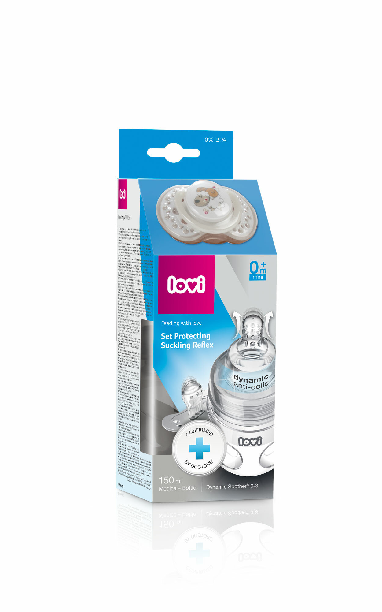 | Дополнительная информация | Антиколиковая бутылочка для кормления Lovi в комплекте с динамической силиконовой пустышкой. |