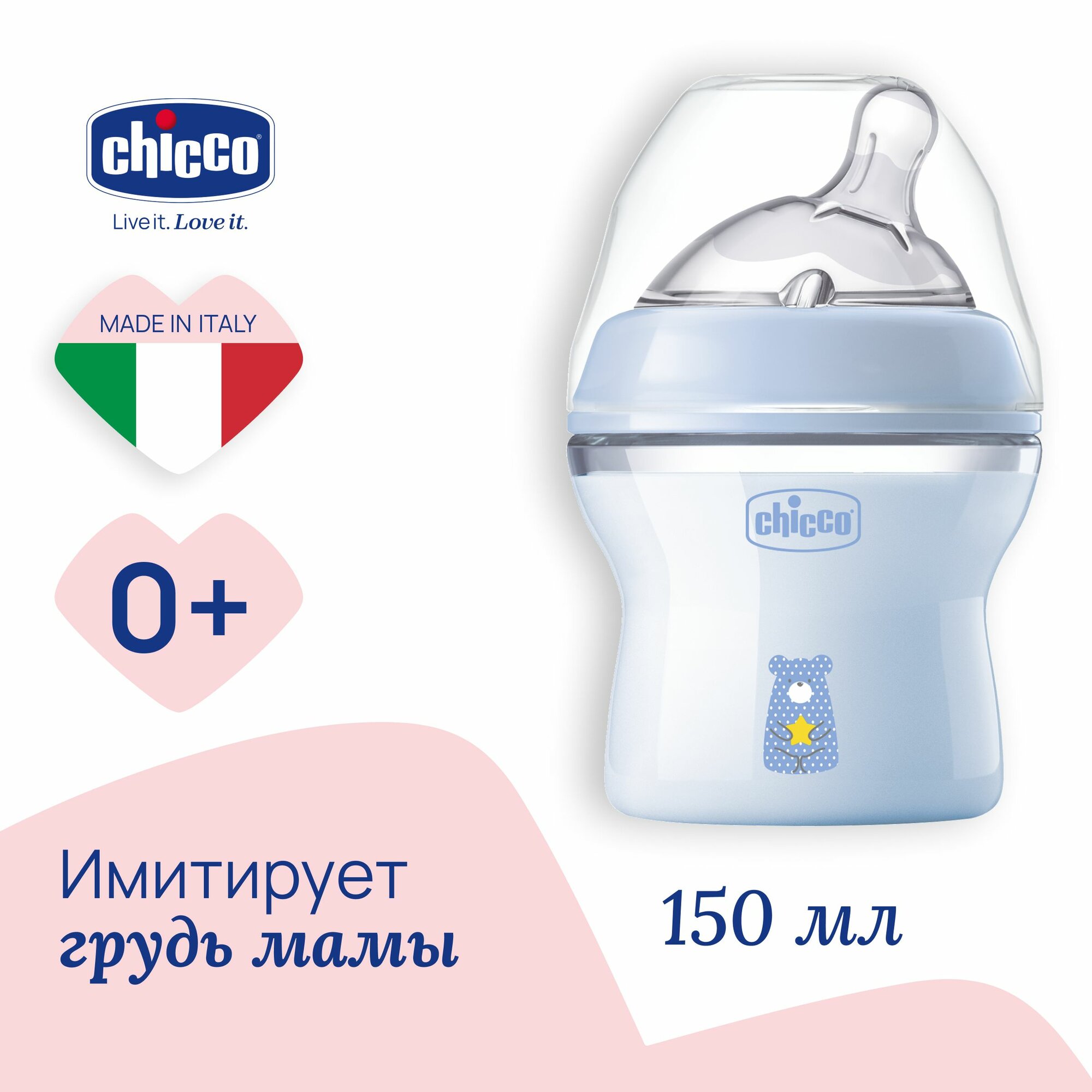 Бутылочка Chicco Natural Feeling 150 мл, 0м+ голубая для ребенка