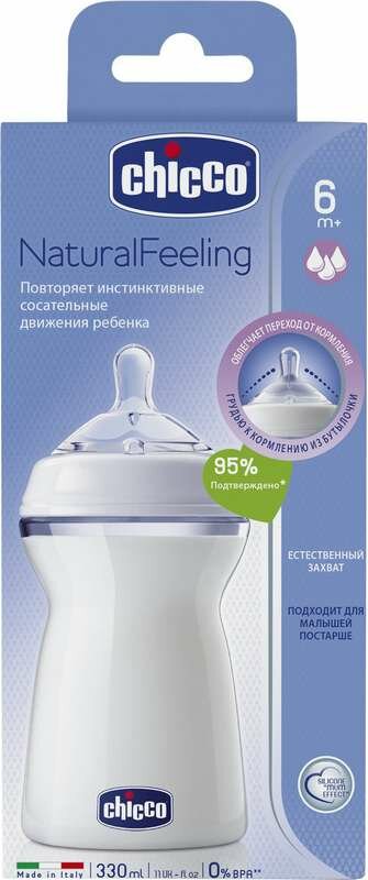 Бутылочка Chicco Natural Feeling 330 мл, 6м+ нейтрал. для ребенка
