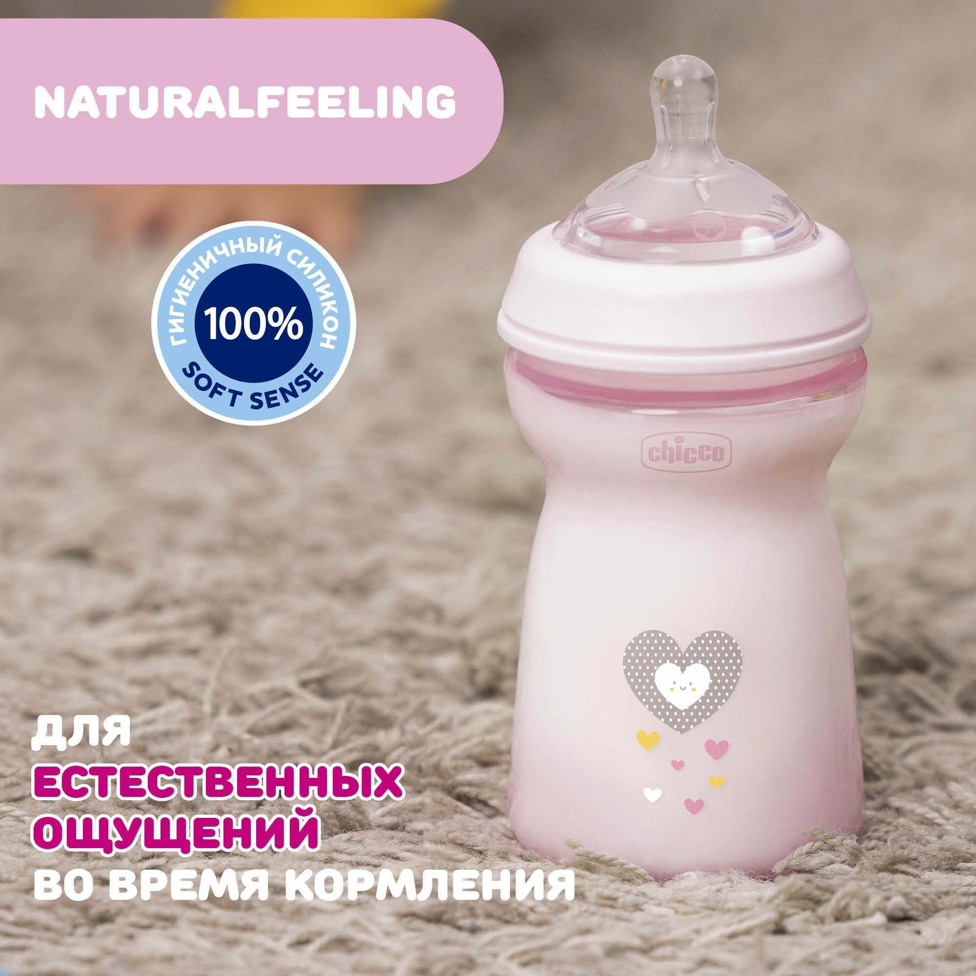 Купить Бутылочка Chicco Natural Feeling 330 мл, 6м+ розовая для ребенка