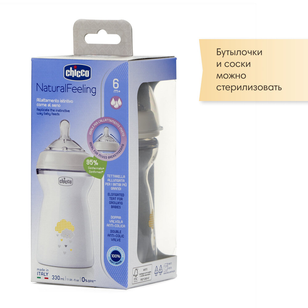 Бутылочка Chicco Natural Feeling 330 мл, 6м+ нейтрал. для ребенка