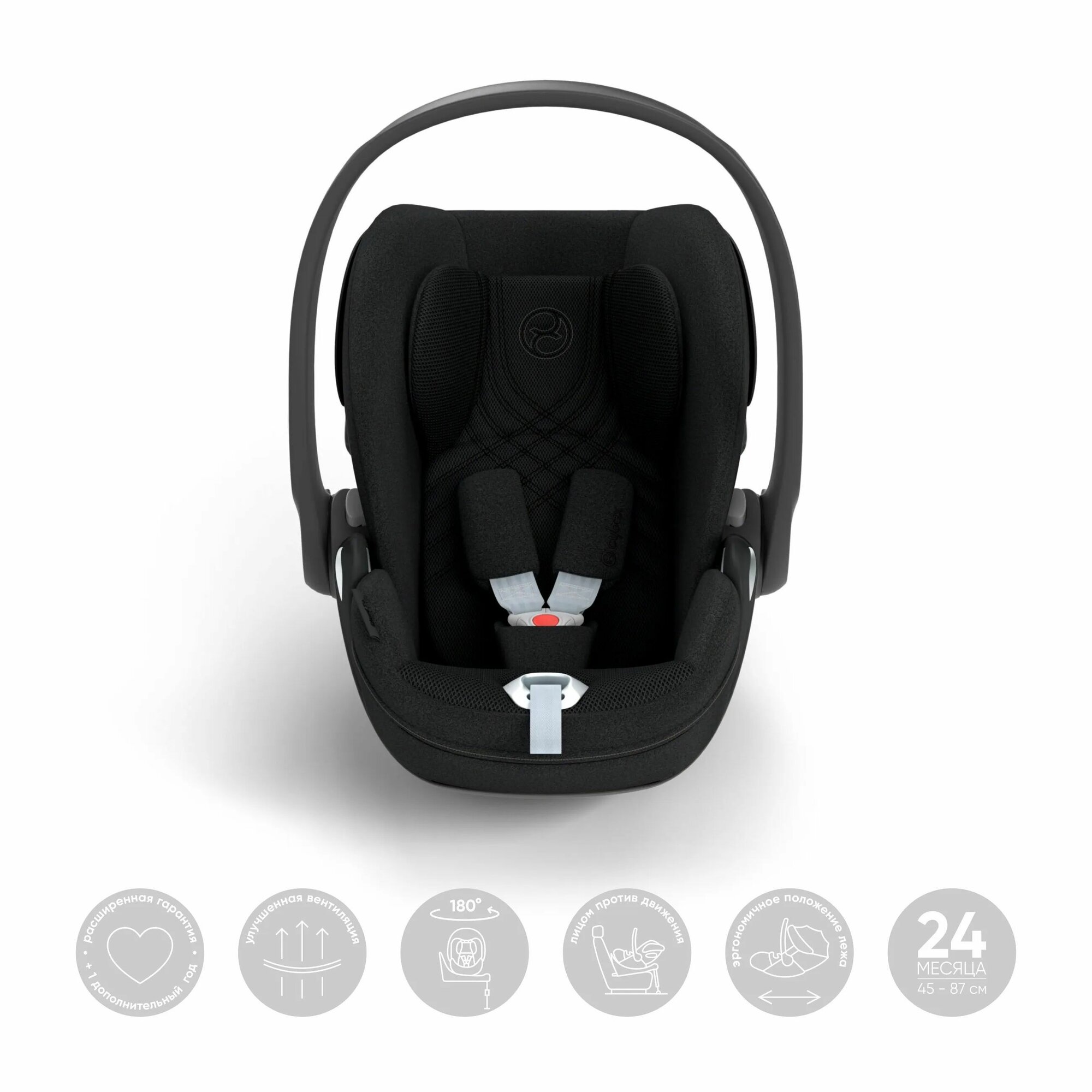 | Опции | возможность установки на шасси / защита от боковых ударов / поворотный механизм / поддержка головы новорожденного / положение для сна |
