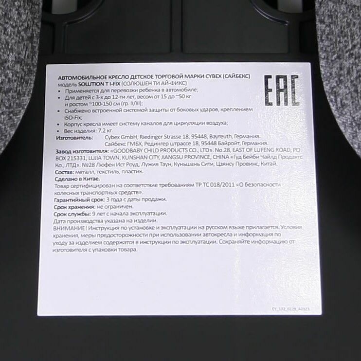 | Крепление | Isofix |