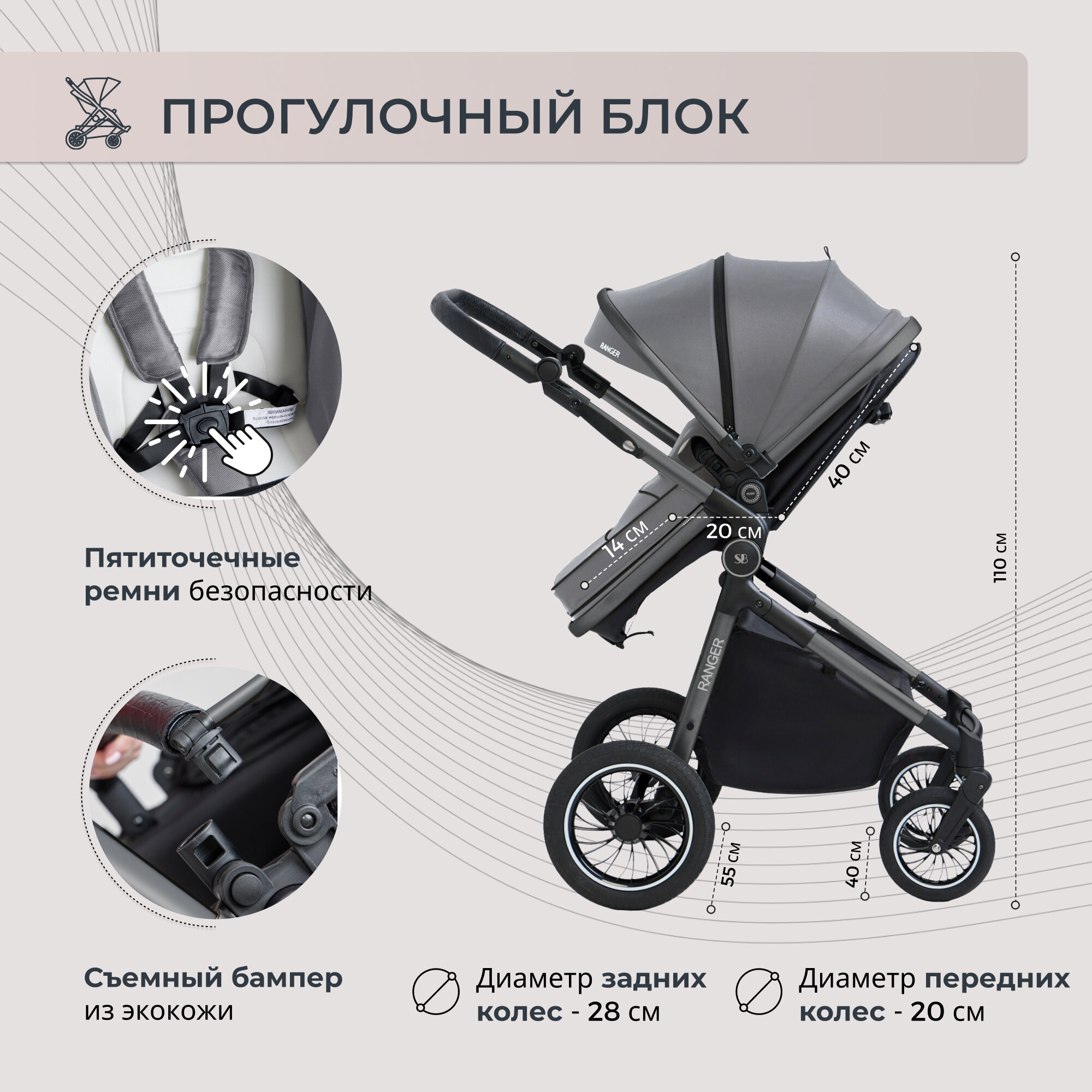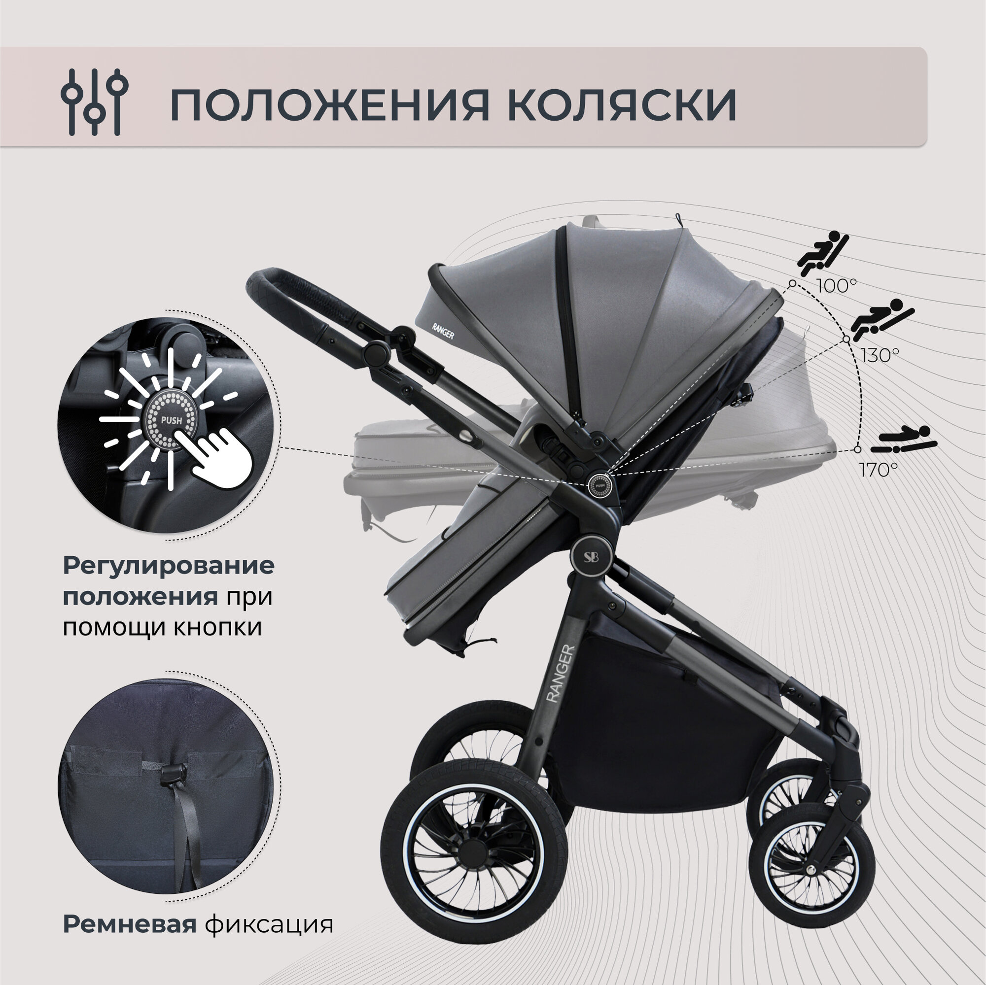 Коляска-трансформер 2в1 Sweet Baby Ranger Grey интересное: