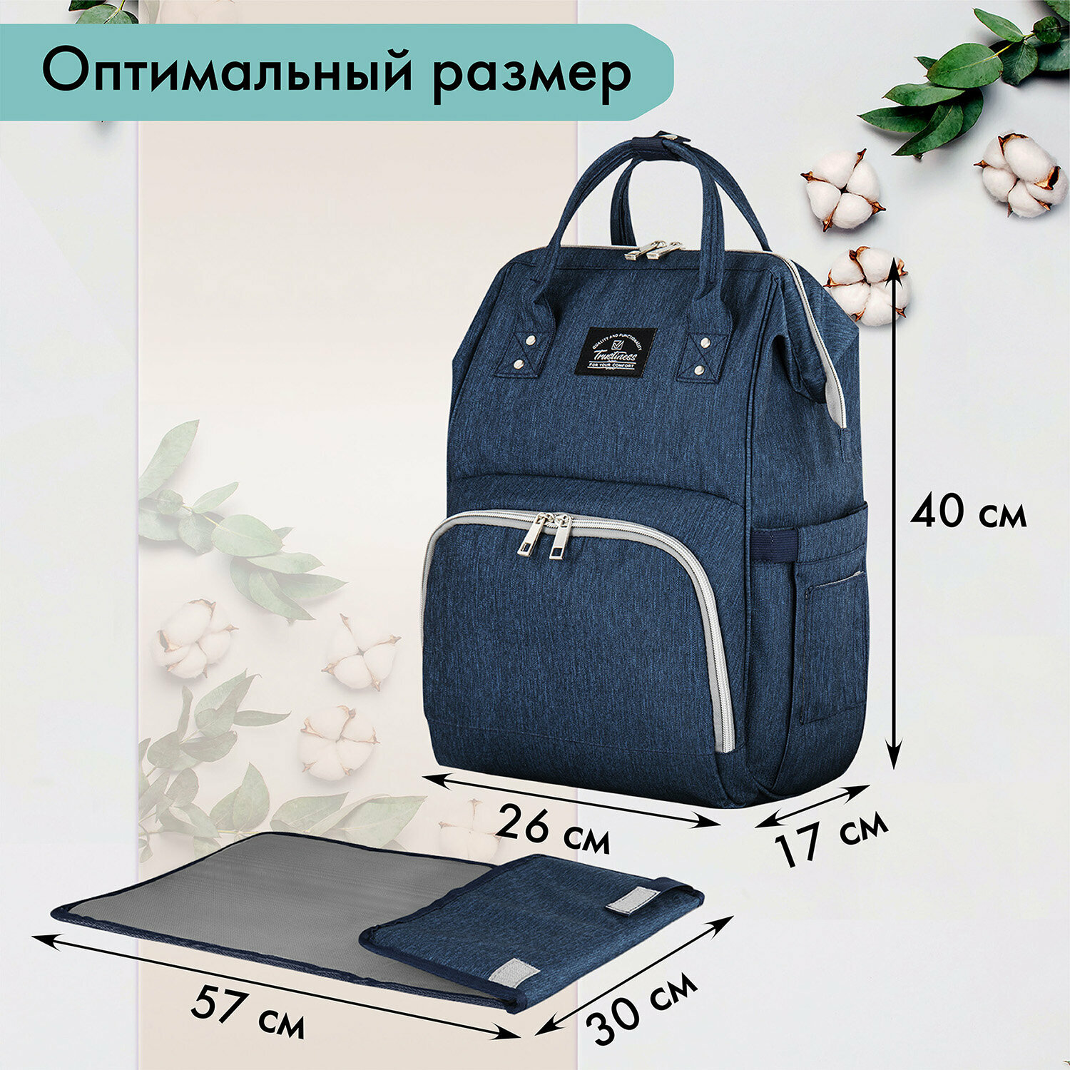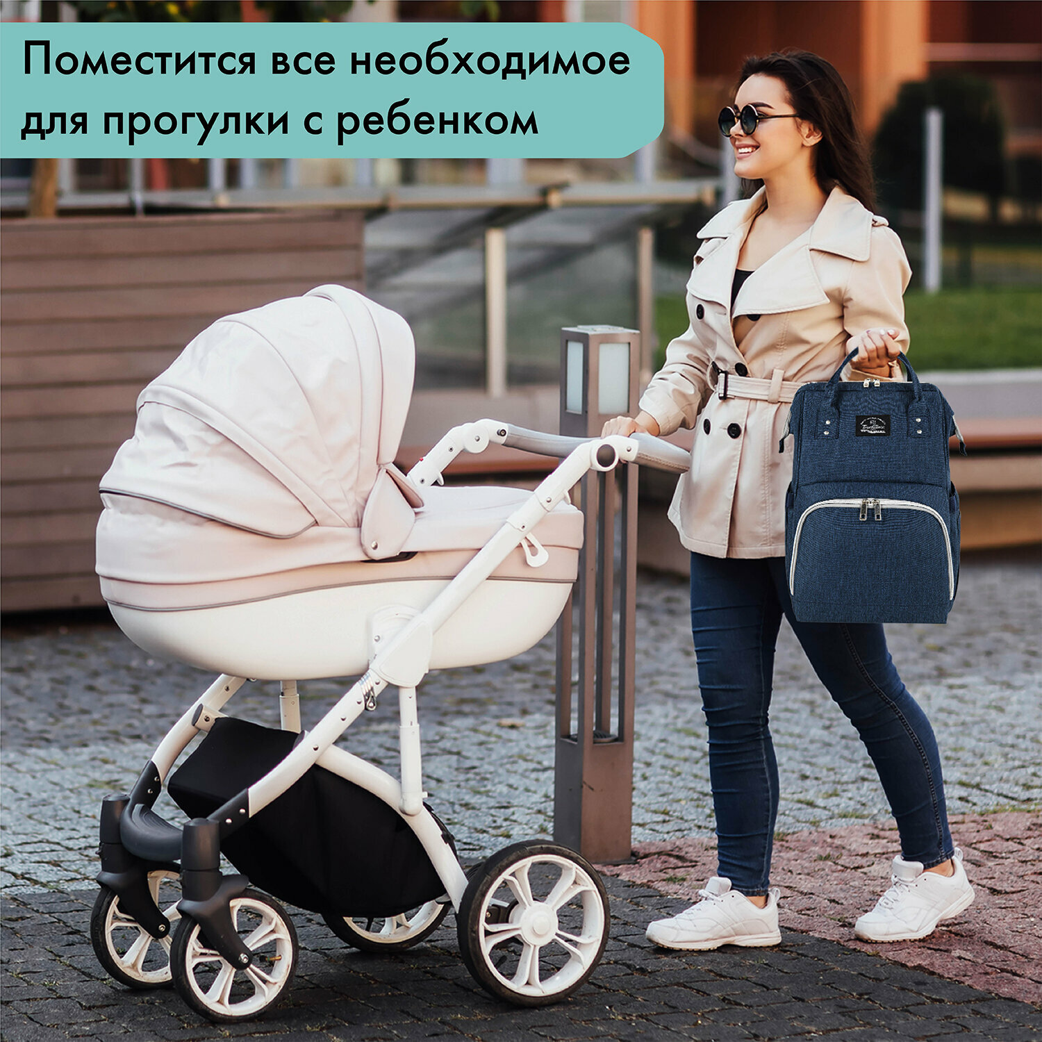 Рюкзак для мамы BRAUBERG MOMMY с ковриком, крепления на коляску, термокарманы, синий, 40x26x17 см, 270820, 1шт в компл. интересное: