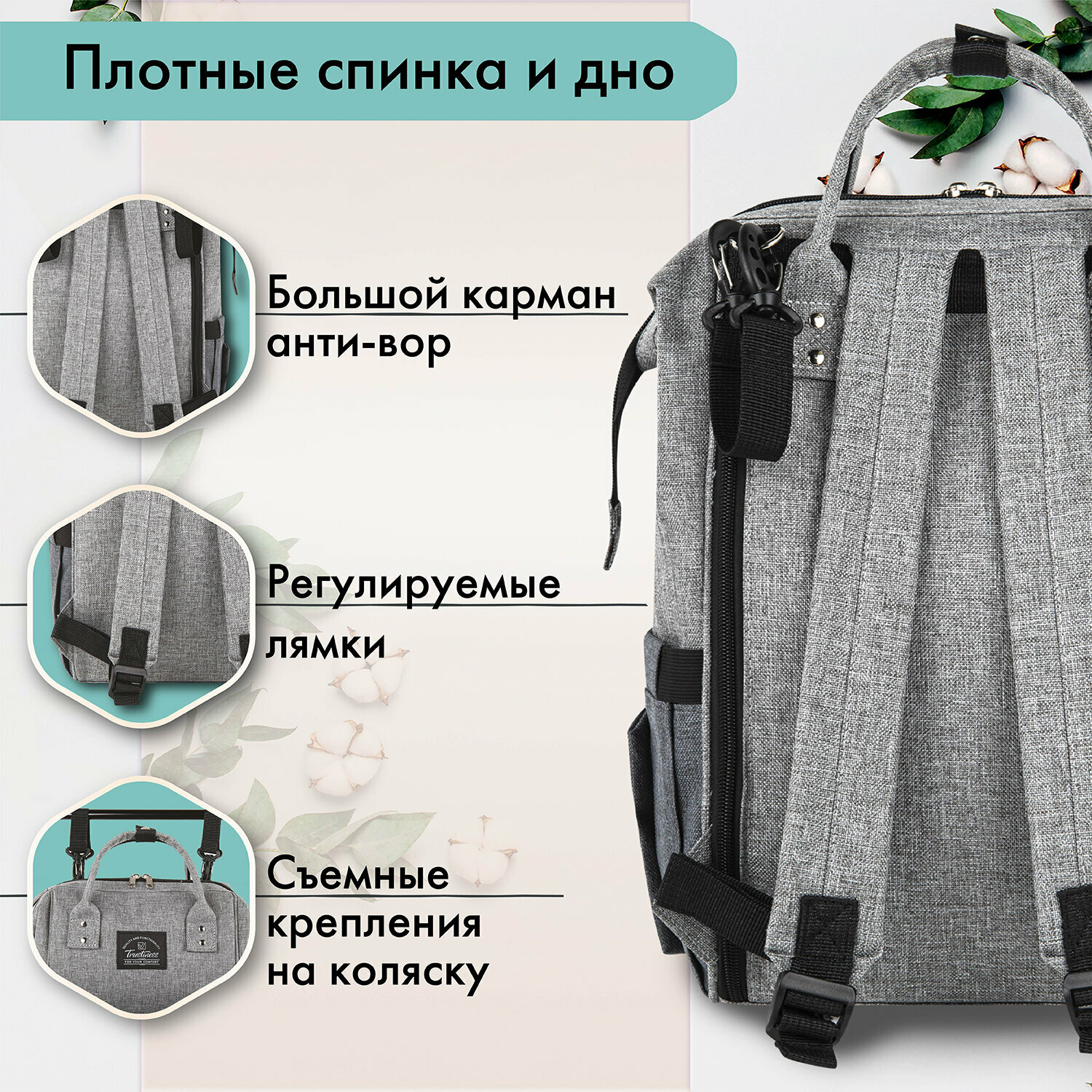 Рюкзак для мамы BRAUBERG MOMMY, крепления для коляски, термокарманы, серый, 41x24x17 см, 270818, 1шт в компл. интересное: