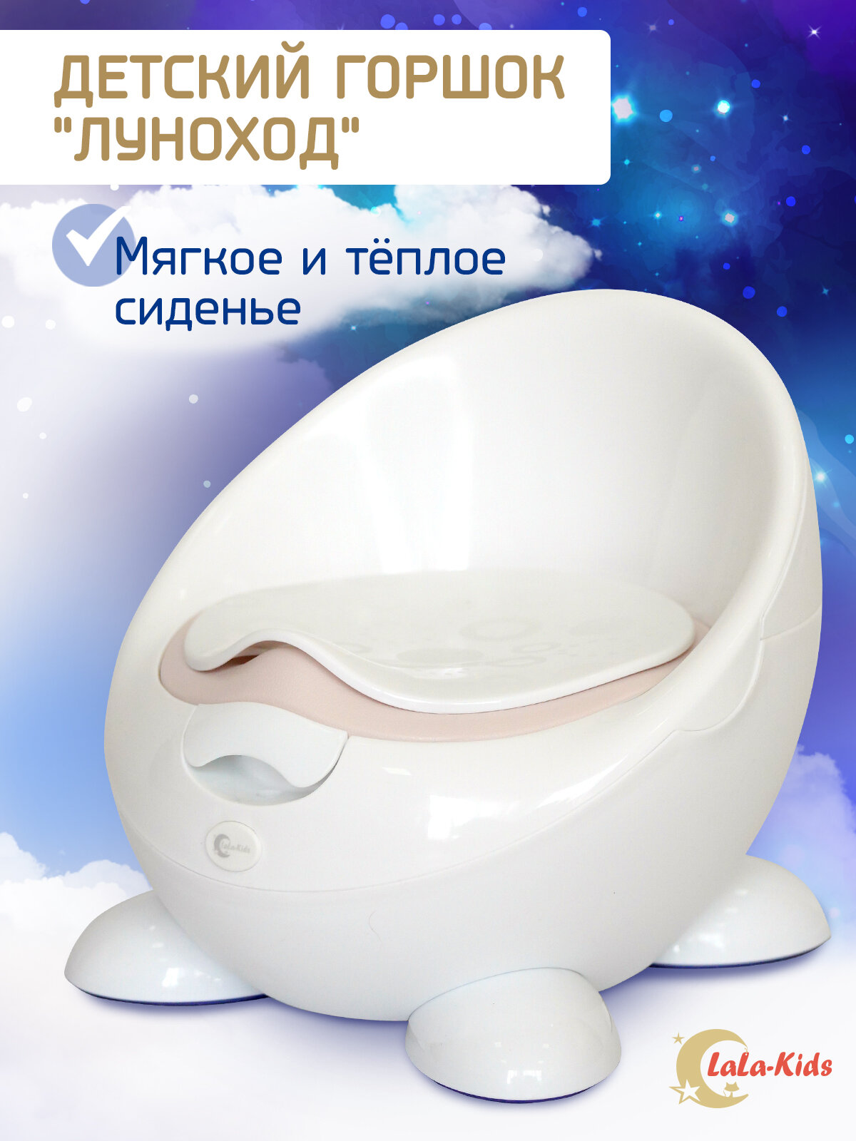Горшок детский с мягким сиденьем и крышкой "Луноход", LaLa-Kids белый