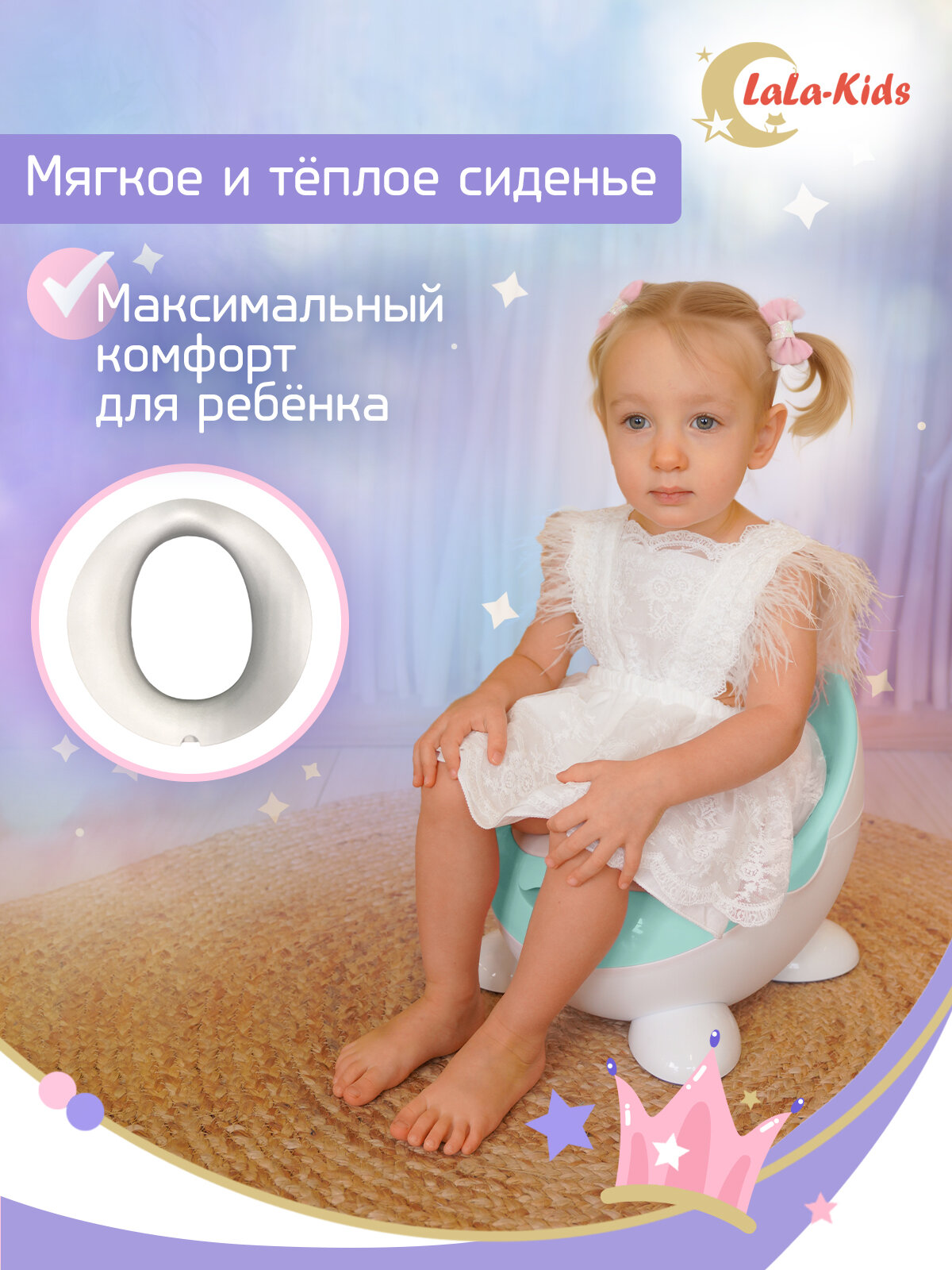 Горшок детский с мягким сиденьем и крышкой "Луноход", LaLa-Kids сиреневый