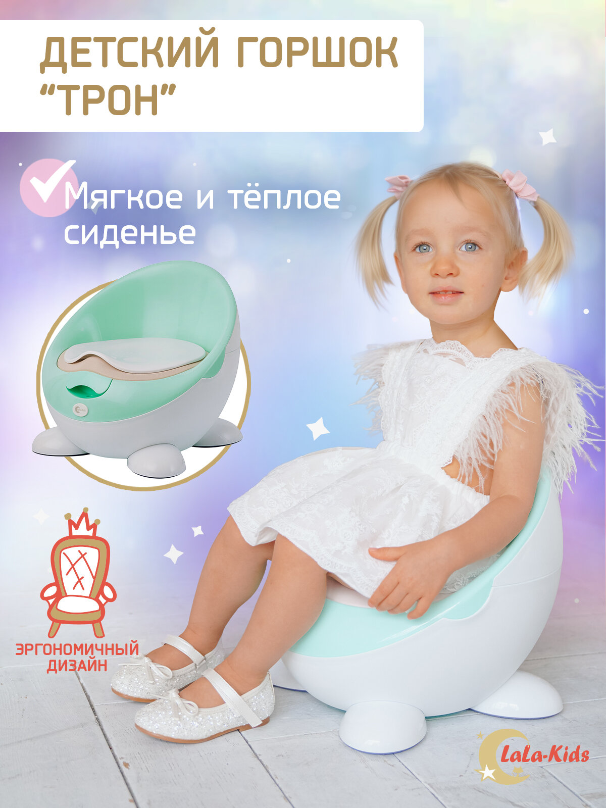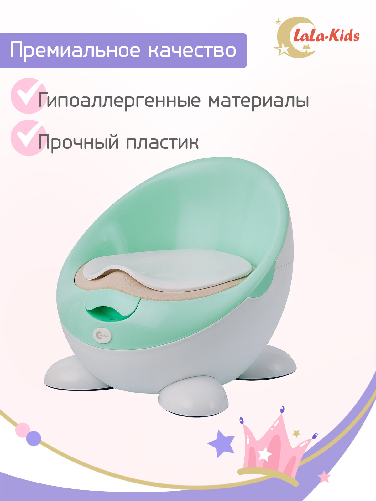 Горшок детский с мягким сиденьем и крышкой "Трон", LaLa-Kids мятный